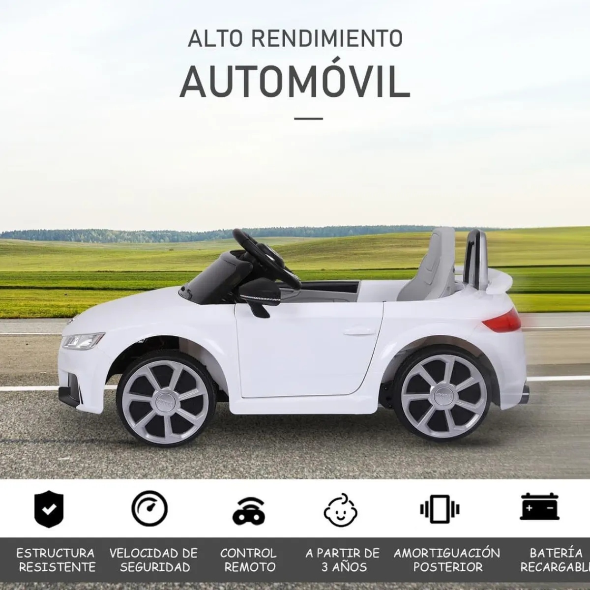 Homcom – Audi TT eléctrico blanco, un vehículo con marcha hacia delante y hacia atrás y con mando a distancia para control parental.