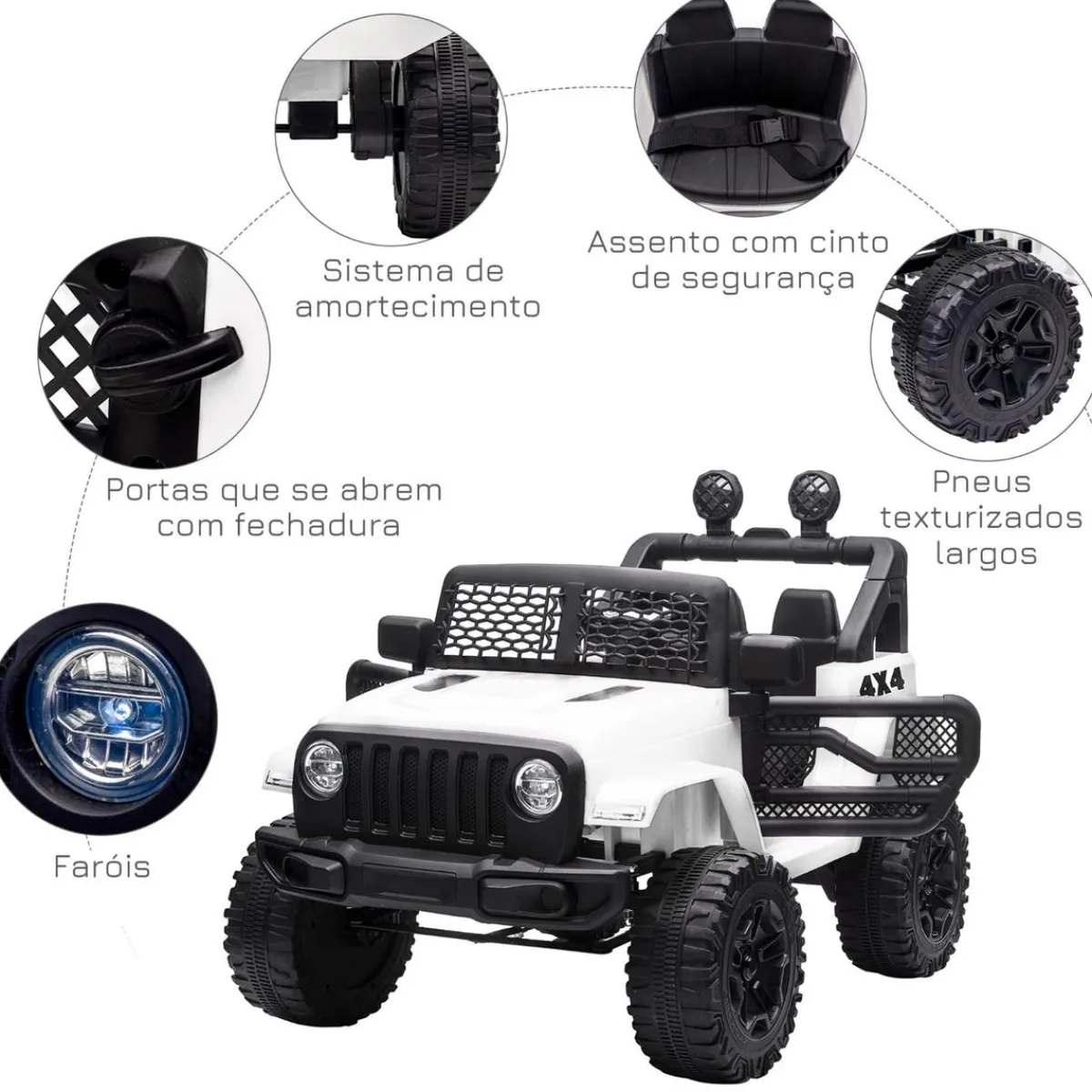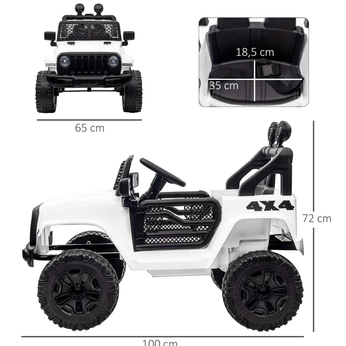 Homcom – Coche todoterreno eléctrico blanco, un vehículo eléctrico infantil que encantará a todos los niños.