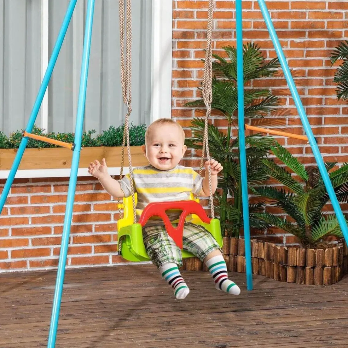 - Columpio infantil adecuado para su uso en interiores y exteriores.