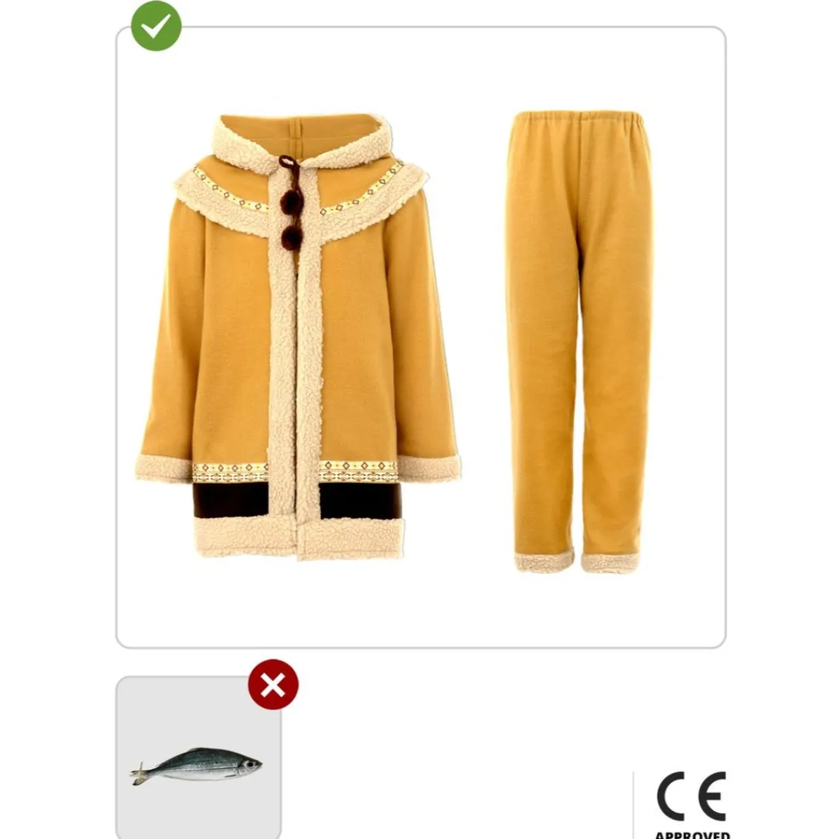 ¡Protege a los pequeños aventureros del frío imaginario con este disfraz de esquimal para niño! La chaqueta y pantalón, en poliéster 100%, recrean un outfit polar con capucha y detalles robustos. Ideal para fiestas de invierno, actividades al aire libre o disfraces escolares. ¡Un diseño que fomenta el juego simbólico y la creatividad!