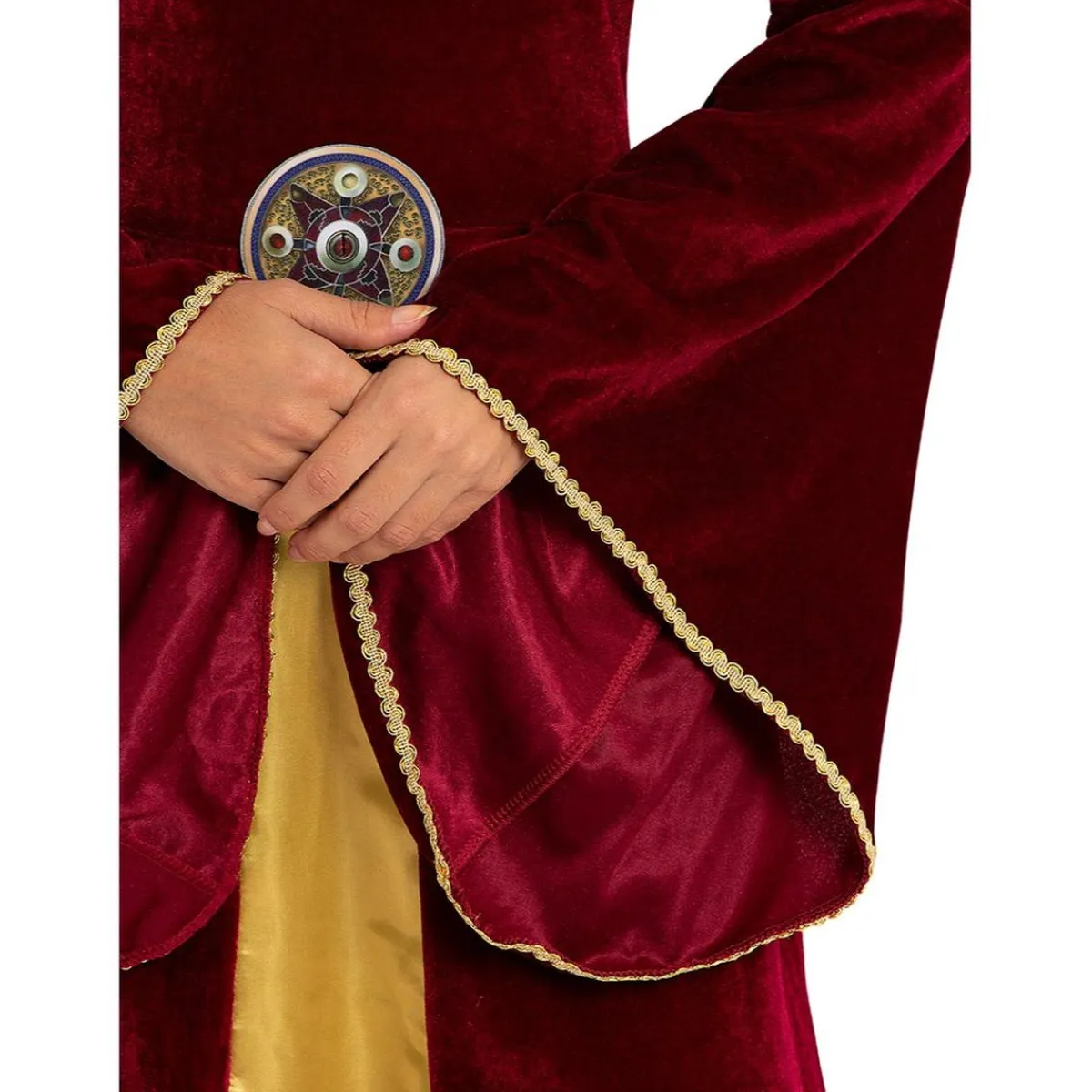 Sumérgete en la leyenda del Rey Arturo con este elegante disfraz de Lady Ginebra. Compuesto por un vestido y una corona, este conjunto está hecho en 100% poliéster para ofrecer un ajuste perfecto y un aspecto regio. Perfecto para fiestas medievales, carnavales o eventos temáticos, este disfraz te transportará a un mundo de caballeros y castillos.