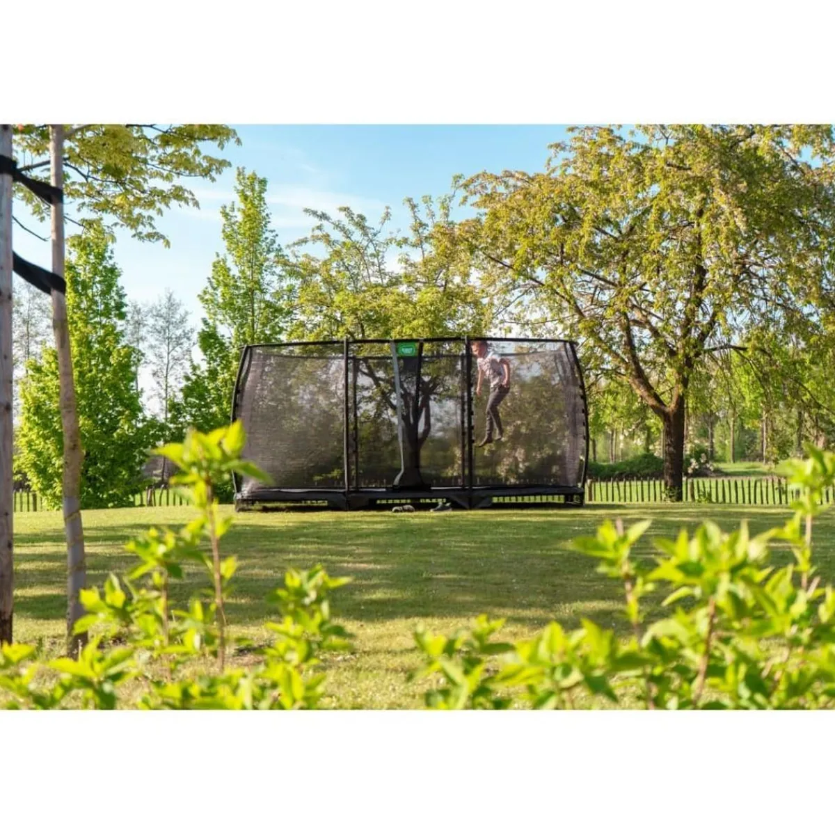 Exit – Cama elástica de suelo Allure Classic 214 x 366 cm verde, un trampolín para ser semienterrado con borde protector acolchado y red de seguridad.