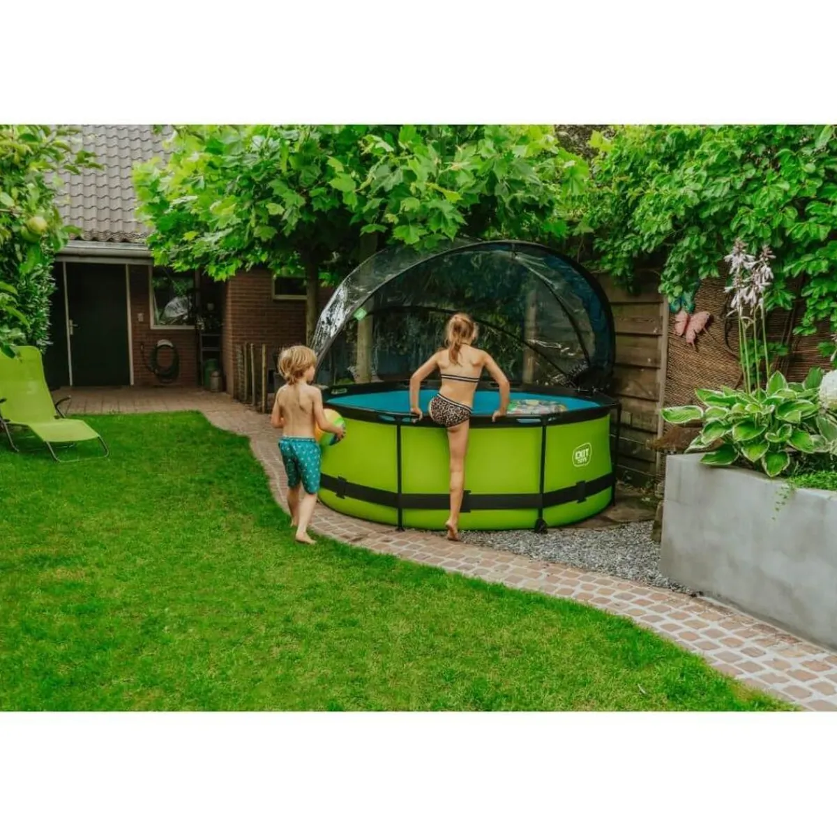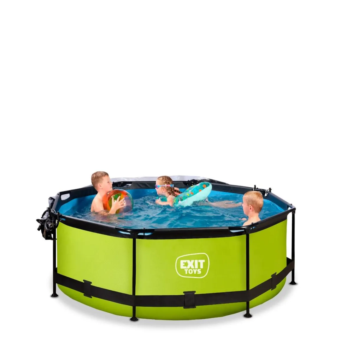 Exit – Piscina Lime verde diámetro 244 x 76 cm con filtro y cúpula transparente, una piscina redonda de color verde lima que se integra perfectamente en tu jardín.