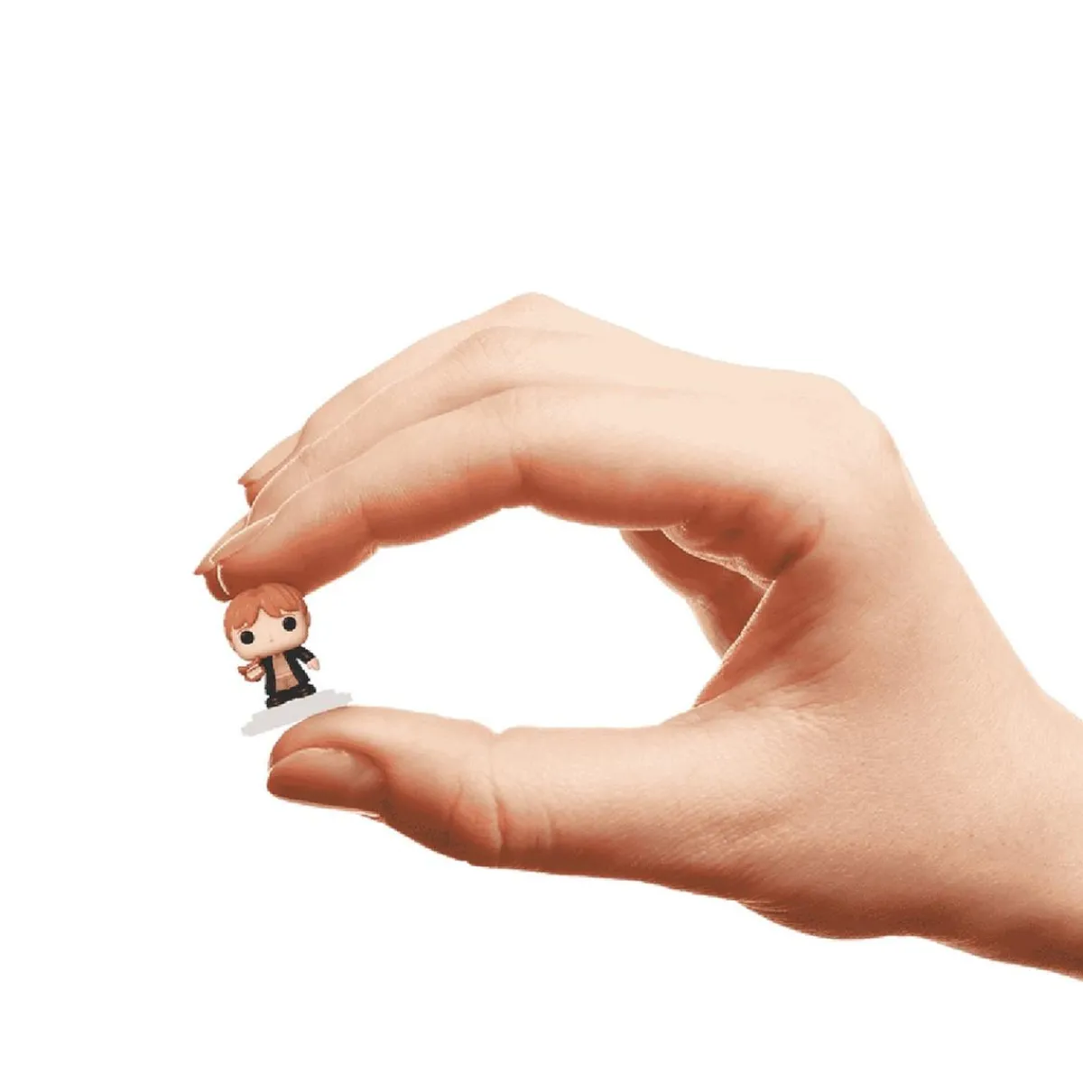 Incluye dos figuras mini Bitty Pop!: Harry Potter con su Chocolate Frog y Ron Weasley sosteniendo el Howler. Cada figura mide aproximadamente 2,3 cm de altura y viene instalada en su base acrílica desmontable, perfecta para colocar dentro de la caja o fuera si prefieres exhibirlas por separado.