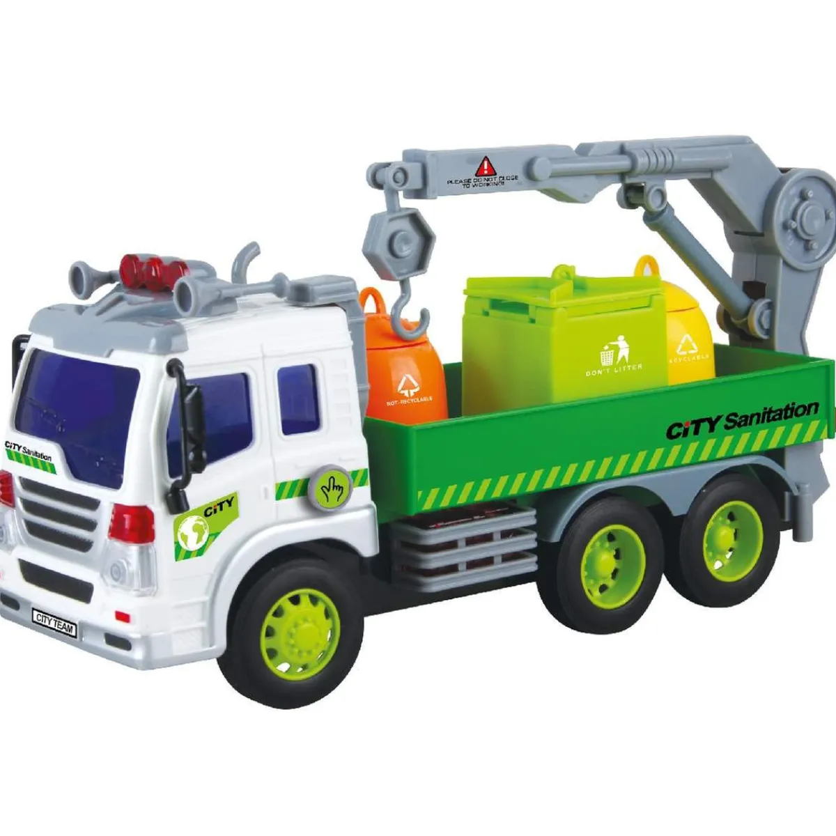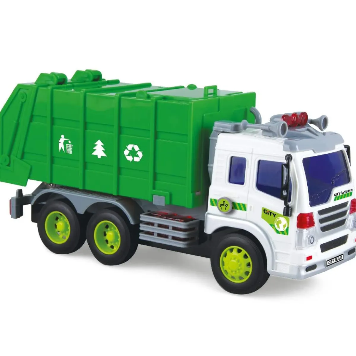 Este camión para niños está a escala 1/16 para lograr aún más realismo. Este vehículo de limpieza urbana es un elemento mítico para completar la colección de camiones de tu hijo.
