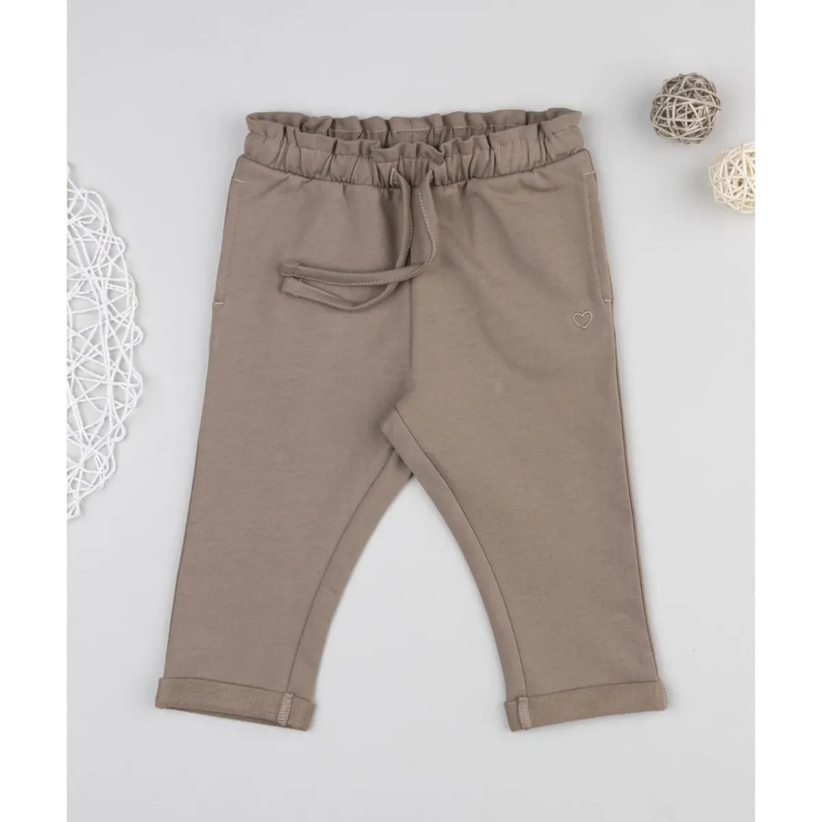 Pantalón marrón con corazón bordado para niña
