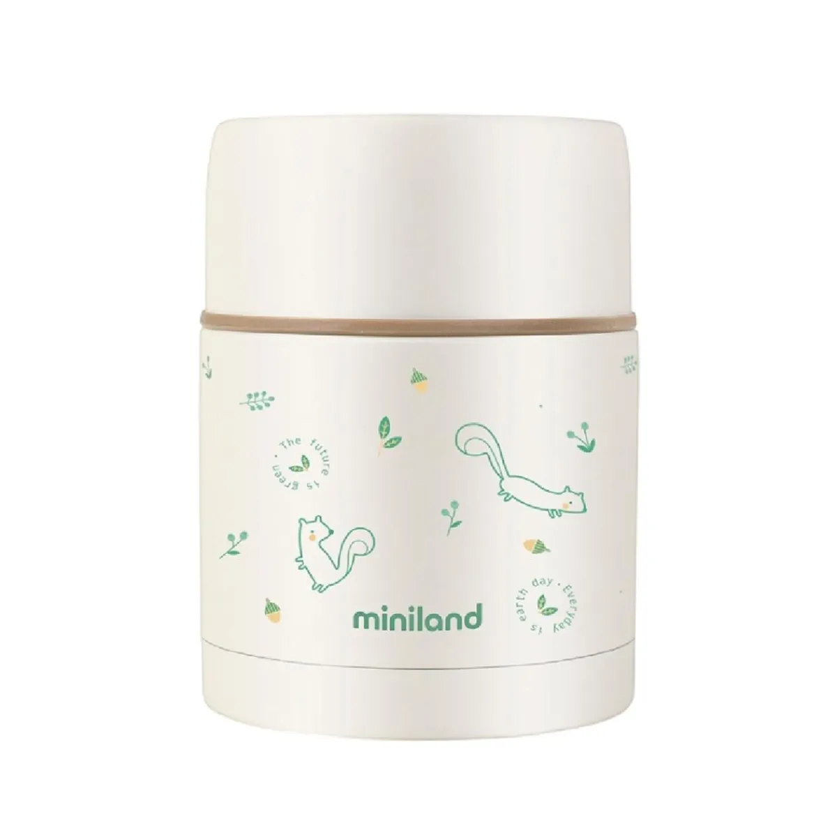 Miniland – Termo para sólidos Nature Chip ardillas 600ml, el compañero ideal para conservar y transportar las comidas de tu bebé manteniendo su temperatura y frescura.