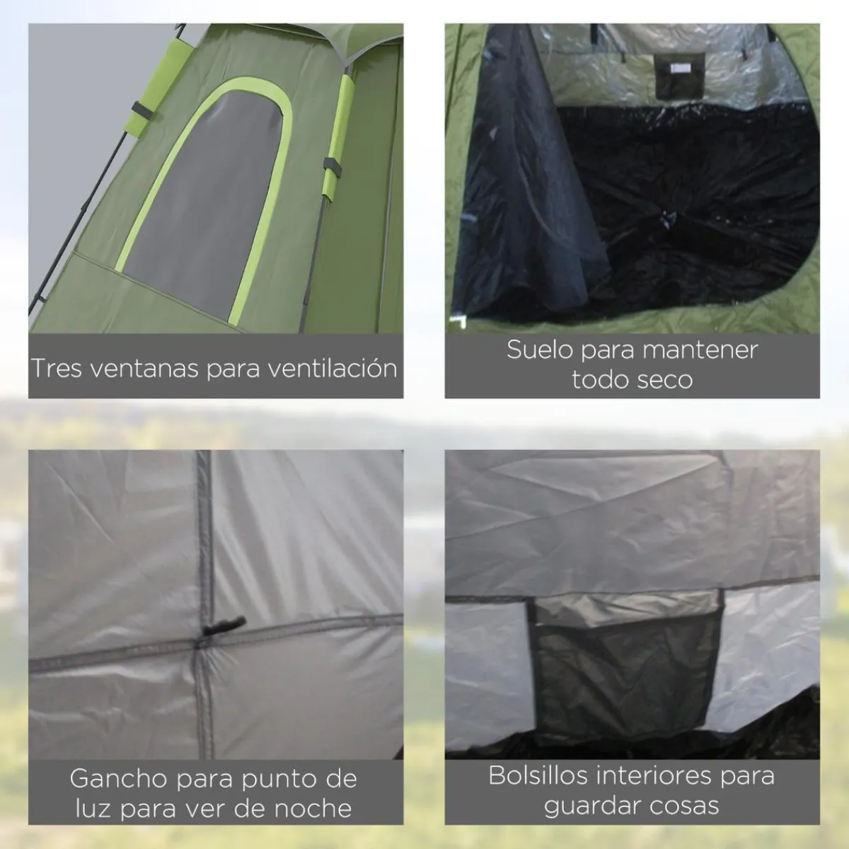 - Tienda de acampada con espacio suficiente para 2-3 personas.