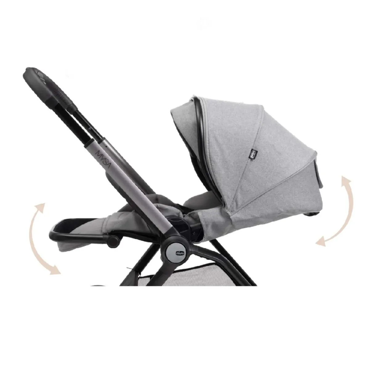 Con detalles premium como tejidos de alta calidad, capota XL con ventana y protección solar, y una amplia cesta portaobjetos, el Chicco Trío Mysa Gran Comfort y First Seat Recline Lunar Rock es la elección perfecta para padres que buscan estilo, comodidad y practicidad en cada paseo.