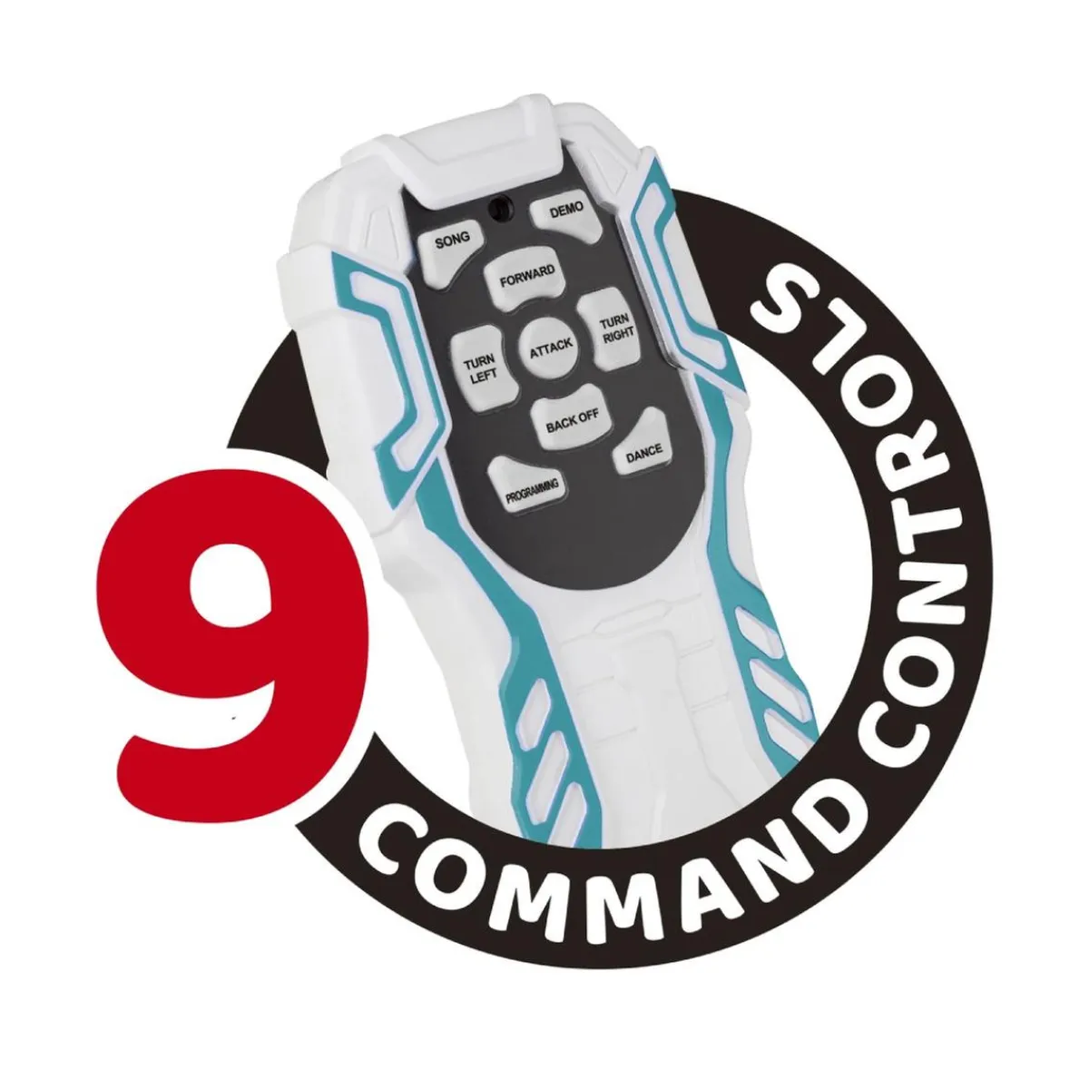 El robot puede realizar las siguientes acciones a través del mando a distancia con 9 comandos: caminar, deslizarse, retroceder, avanzar, girar a la izquierda, girar a la derecha, bailar, cantar, lanzar discos.