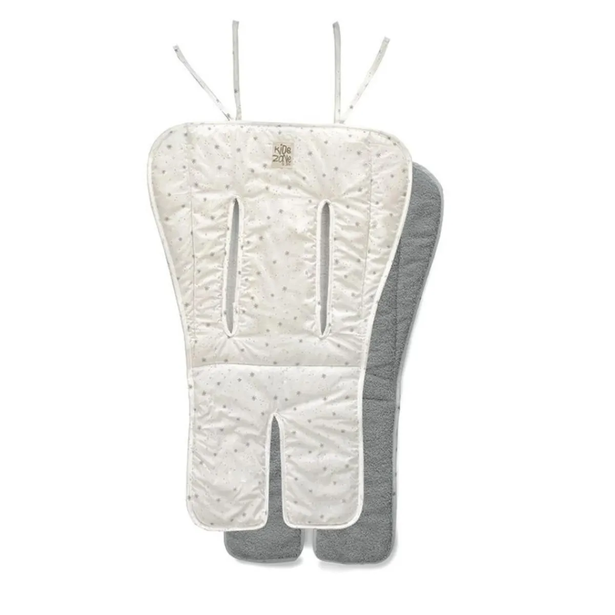 Confeccionada con suave tejido de algodón en el anverso y toalla de rizo en el reverso, esta colchoneta reversible se adapta perfectamente a la mayoría de las sillas de paseo, capazos, hamacas de descanso y tronas, proporcionando una superficie cómoda y transpirable para tu pequeño.