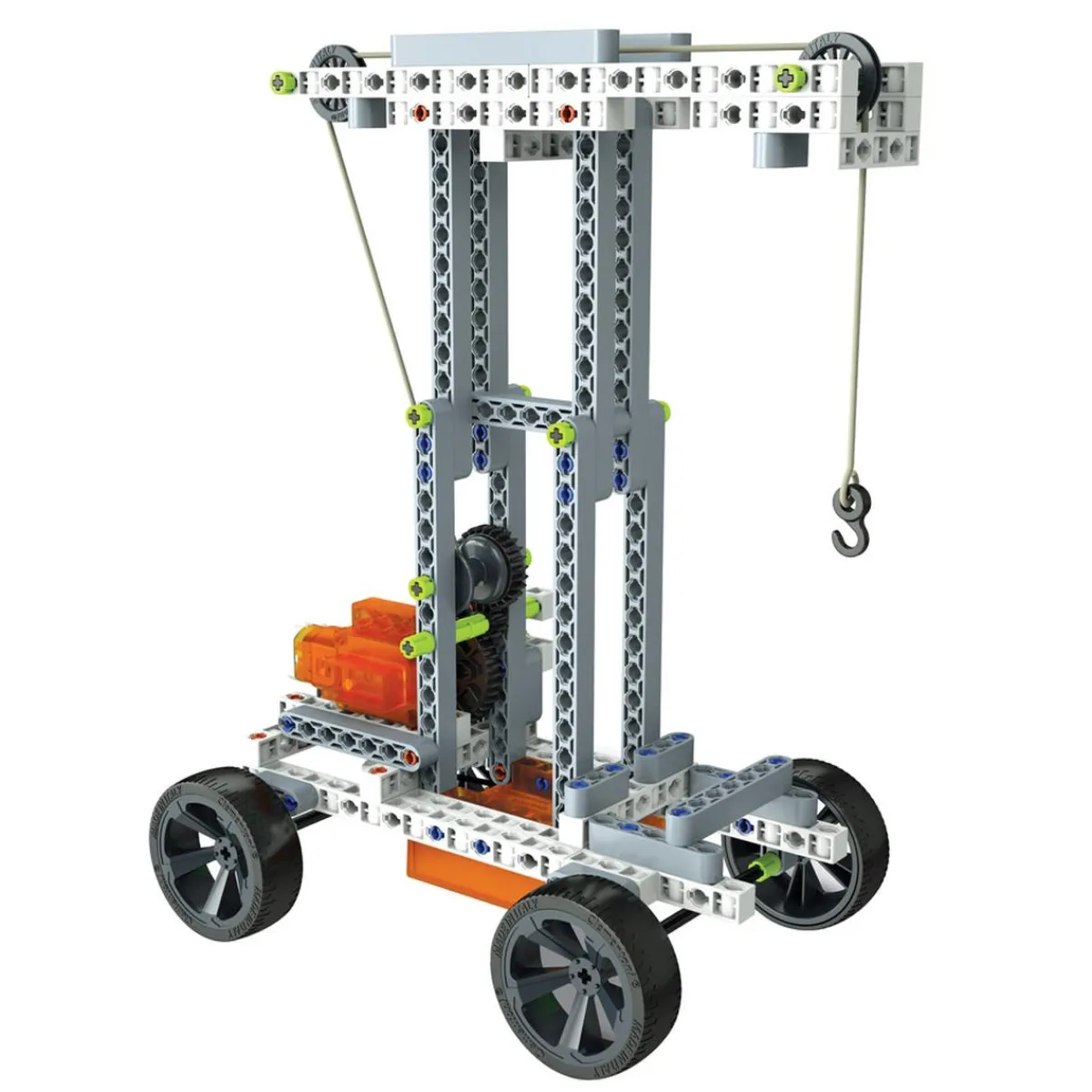 Laboratorio de Mecánica, un completísimo kit con más de 250 componentes para crear más de 50 construcciones incrementando el nivel de dificultad. Es posible crear un helicóptero, una grúa eléctrica, y un coche con motor eléctrico en el cual la interacción manual es posible gracias a la transmisión y a las ruedas direccionales. Incluye un manual ilustrado con todas las etapas del montaje, que son completamente seguras. Un laboratorio con el que los niños podrán divertirse mientras aprenden los conceptos fundamentales de la mecánica y la ingeniería. El diseño, el concepto y la fabricación son italianos. Edad recomendada: +8 años.