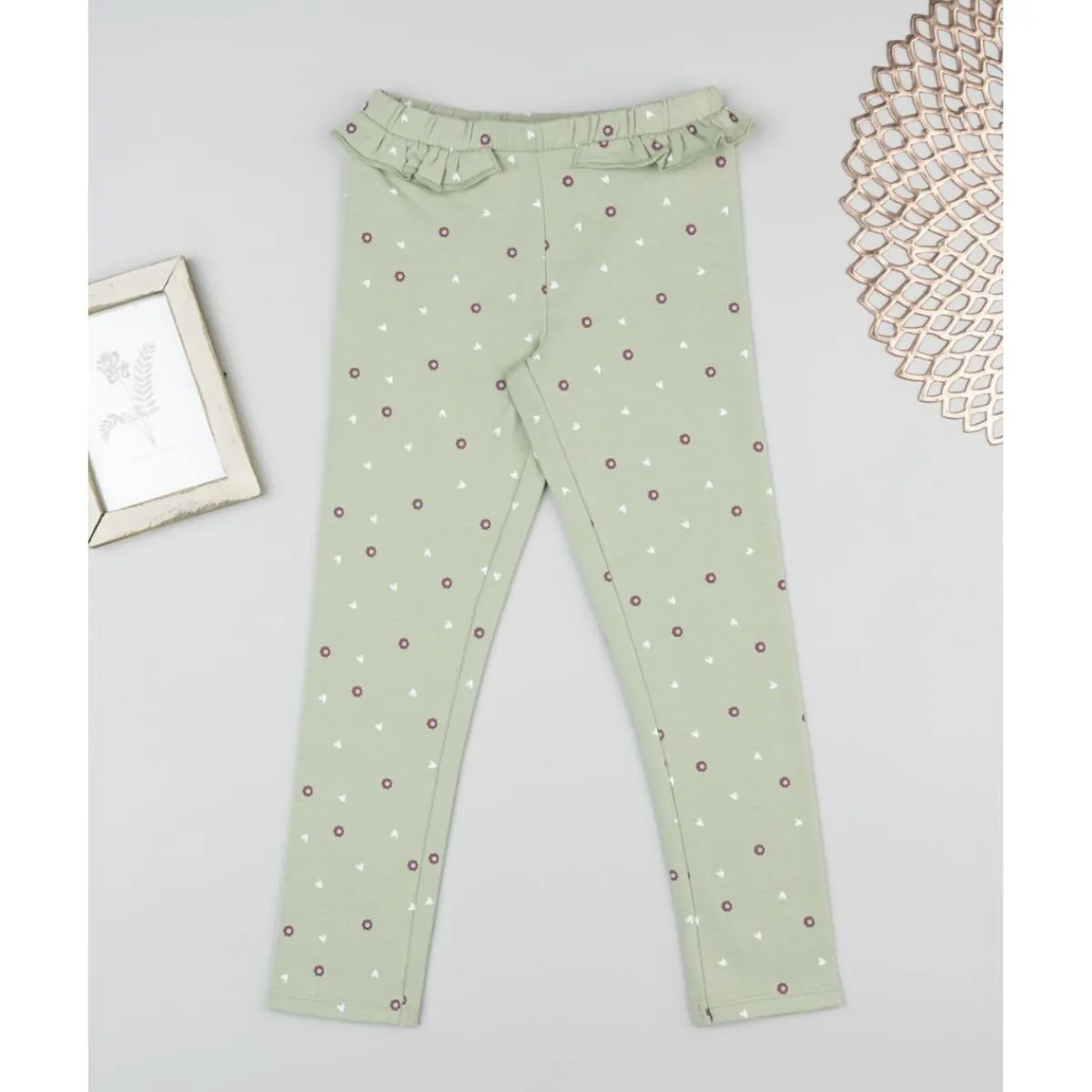 Leggings niña verdes con estampado floral