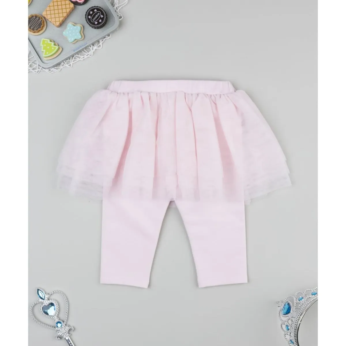 Los leggings rosa con falda de tul incorporada son una prenda divertida y cómoda para niña. Combinan la practicidad de unos leggings elásticos con el encanto de una faldita vaporosa.