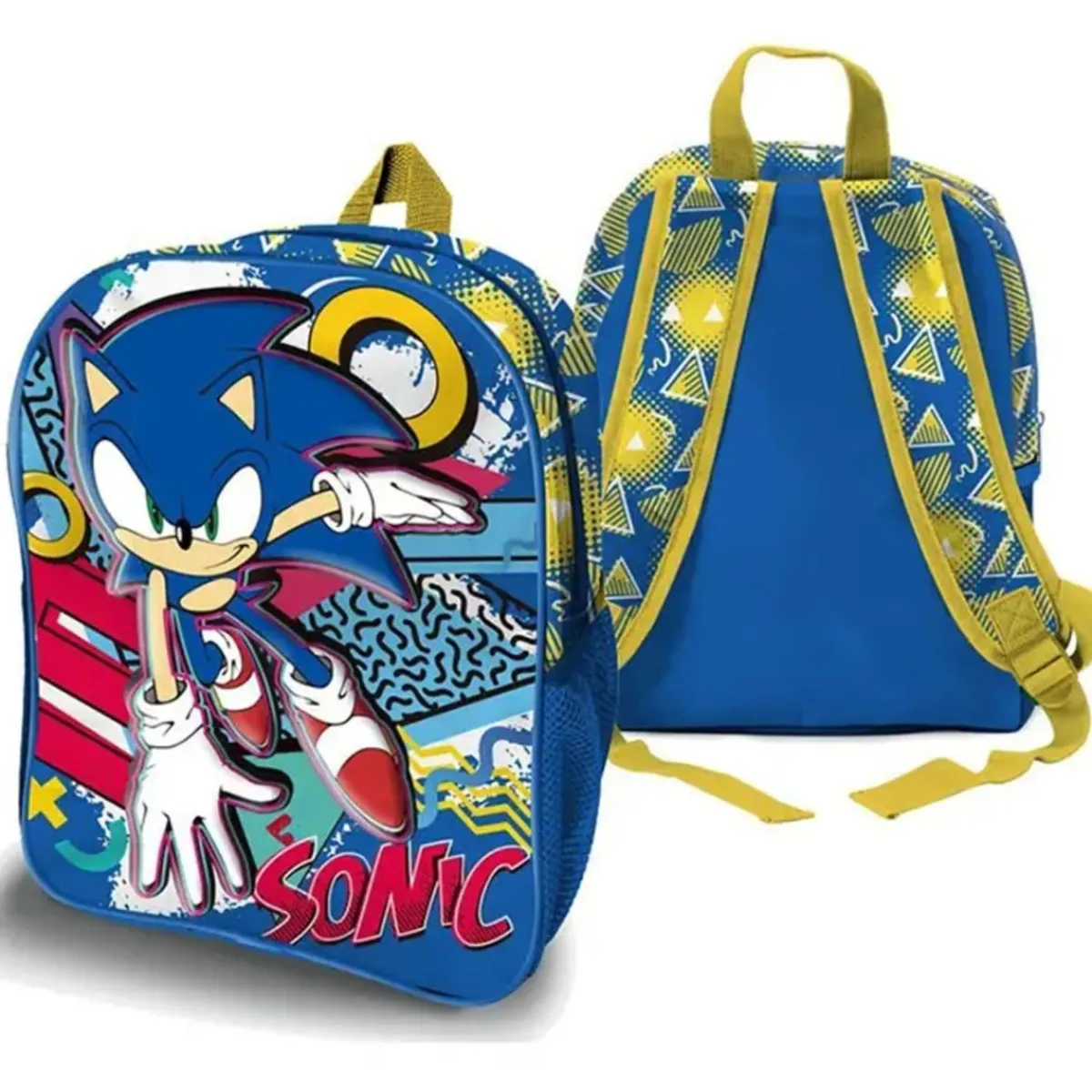Características: diseño 3D de Sonic, compartimento principal amplio, resistente y ligero, correas ajustables, tamaño compacto.