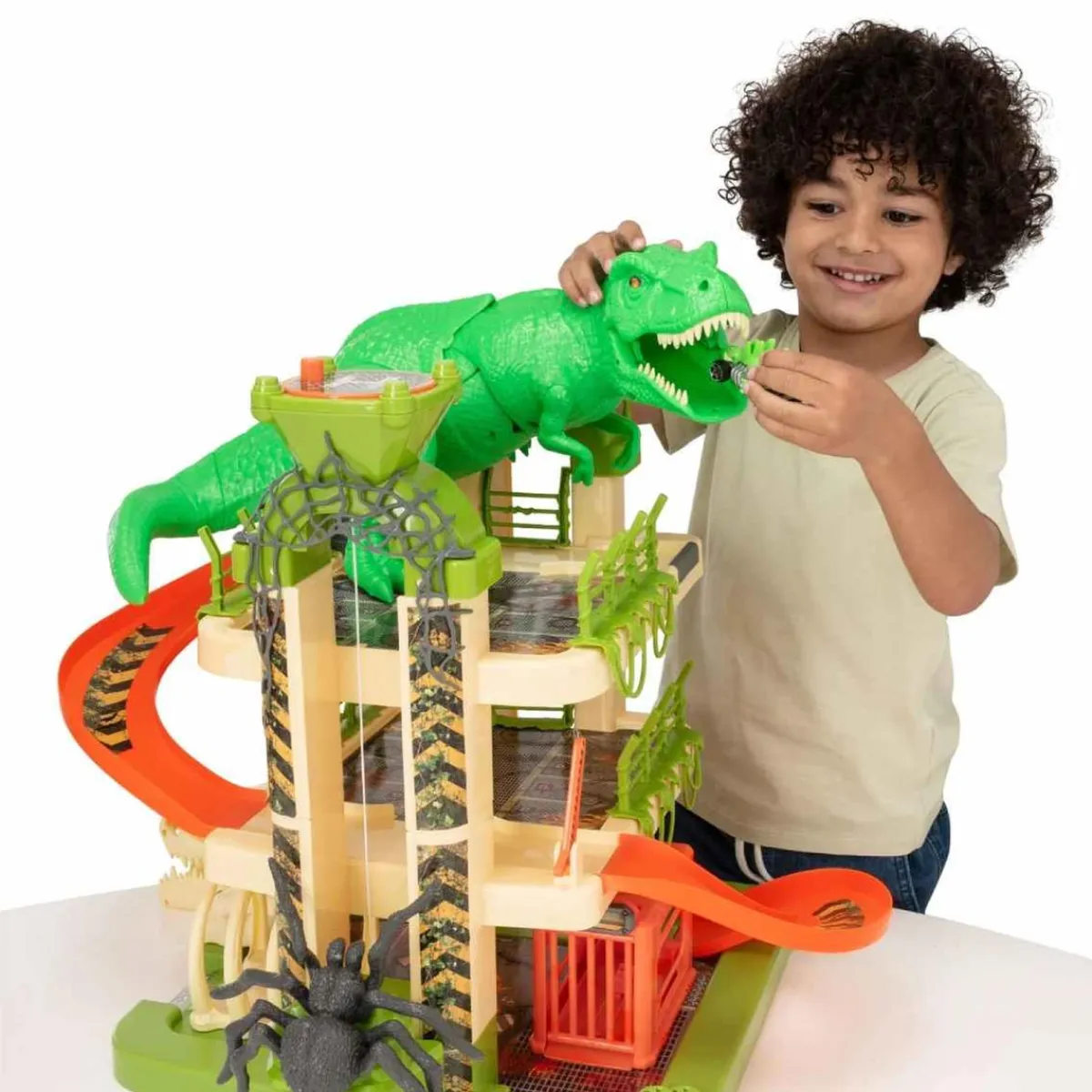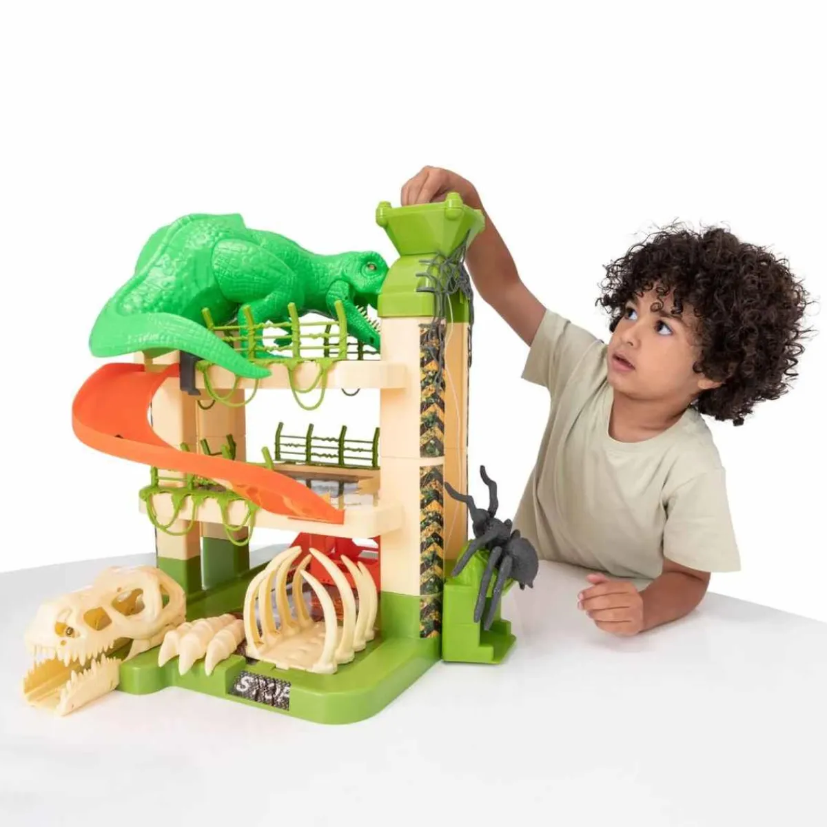 - Sumérgete en la boca del dinosaurio para descender a toda velocidad por los 3 pisos.