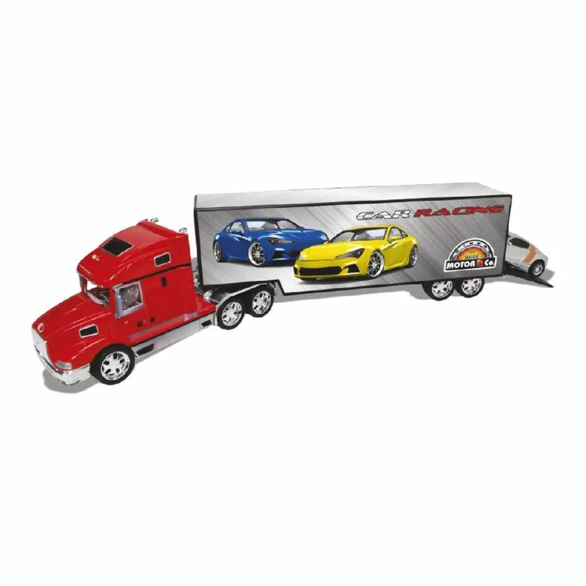 Motor & Co – Maxi camión porta coches (varios colores), diviértete con este camión de transporte de vehículos con sus tres coches incluidos.