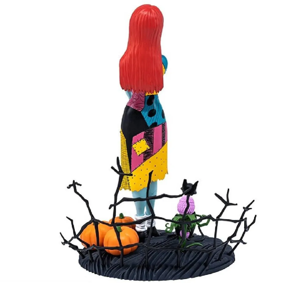 A esta figura de Super Figure Collection no le falta ni un detalle, lleva su característico vestido de colores hecho de retales y está sobre una base muy detallada con el gato negro y las calabazas de Halloween.