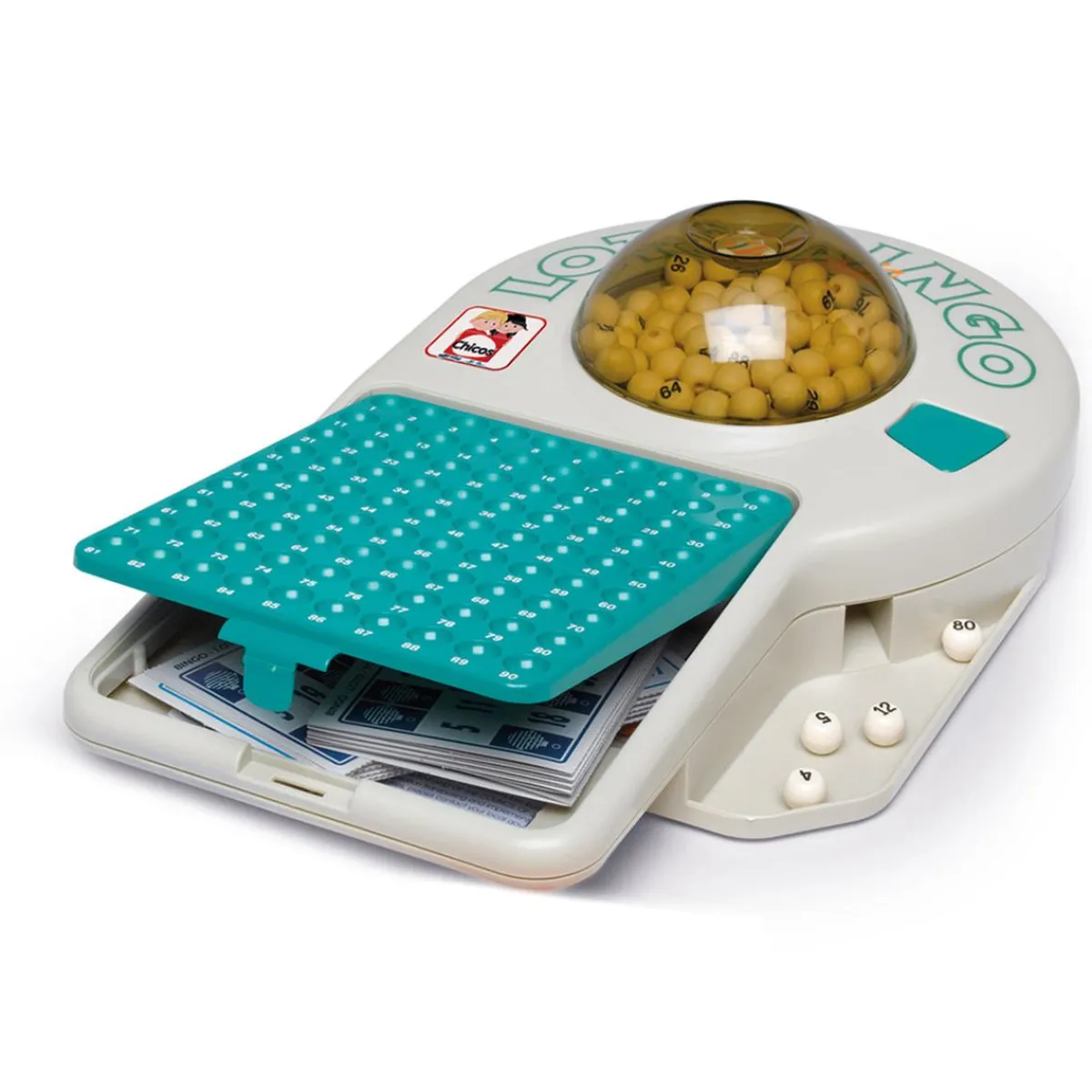 Bingo Eléctrico, la Lotería Eléctrica con24 cartones. Incluye 24 cartones, fichas de juego y compartimento para guardarlos. Con la Lotería Eléctrica las tardes de entretenimiento en familia ya están completas. Siente la emoción de ese momento en el que aparece el número ansiado y puedes cantar línea o bingo. El mecanismo de extracción automático de bolas selecciona una tras otra los números al azar. La numeración de las 90 bolas está gravada para que no desaparezcan los números con el uso continuado. Funciona con 2 pilas tipo C. Pilas NO incluidas. Edad recomendada: +3 años.