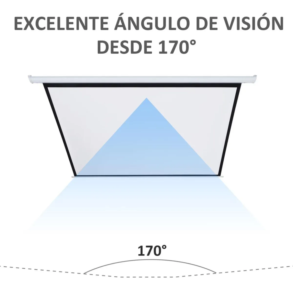 Esta pantalla de proyección motorizada de HOMCOM con ángulo de visión amplio y 100 pulgadas es ideal para tu hogar u oficina. Fabricada en plástico de calidad que no se arruga fácilmente, podrás ver tus películas favoritas a lo grande o las presentaciones con tus clientes o equipo de trabajo.