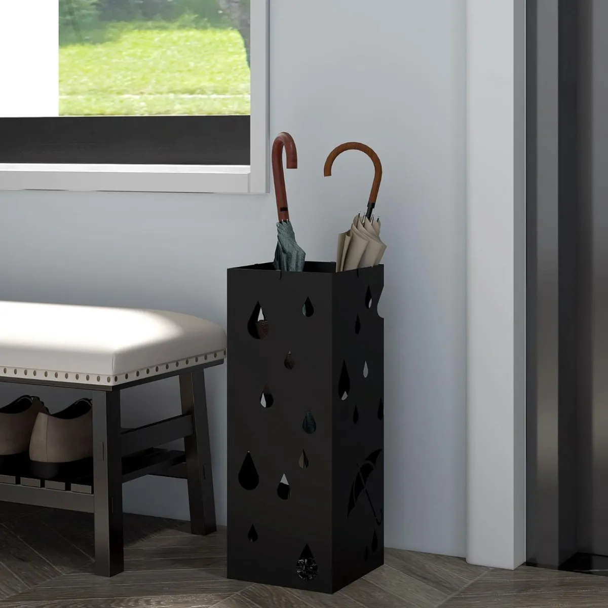 Homcom – Paragüero Negro, puedes disfrutar de la lluvia sin preocuparte por el agua que gotea en el interior. Su bandeja de goteo protege tus suelos, manteniendo tu espacio seco y ordenado.