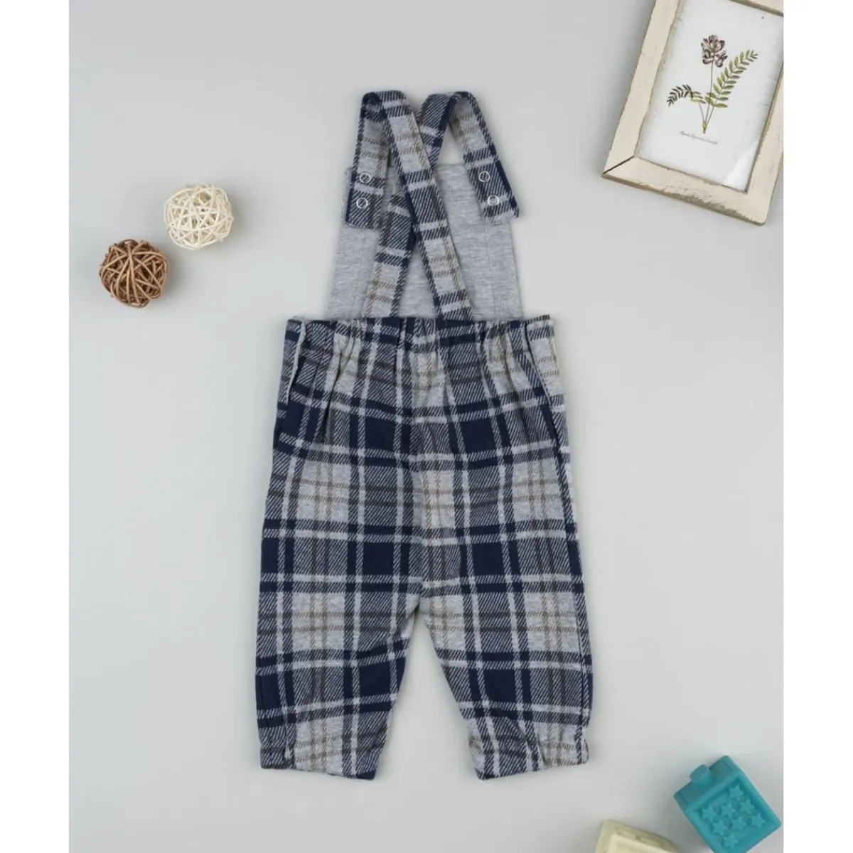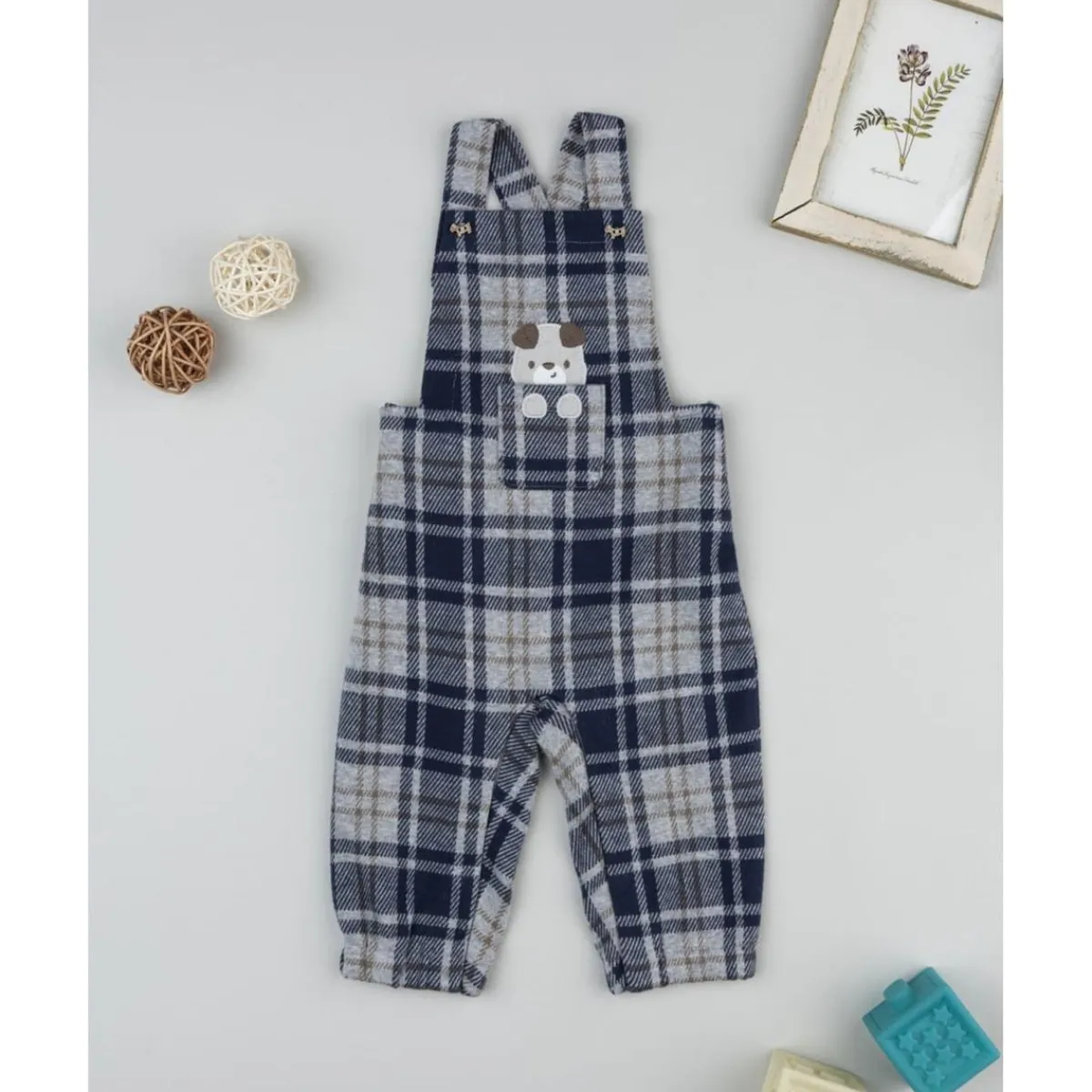 El peto de cuadros escoceses en tonos azules para niño combina tradición y modernidad. Incluye varios bolsillos de parche que añaden practicidad al diseño.