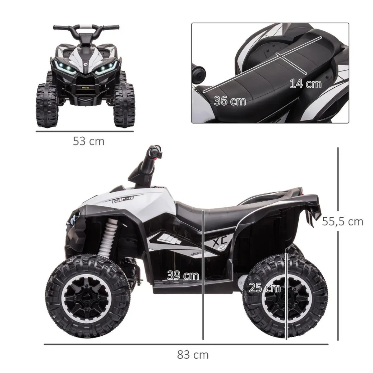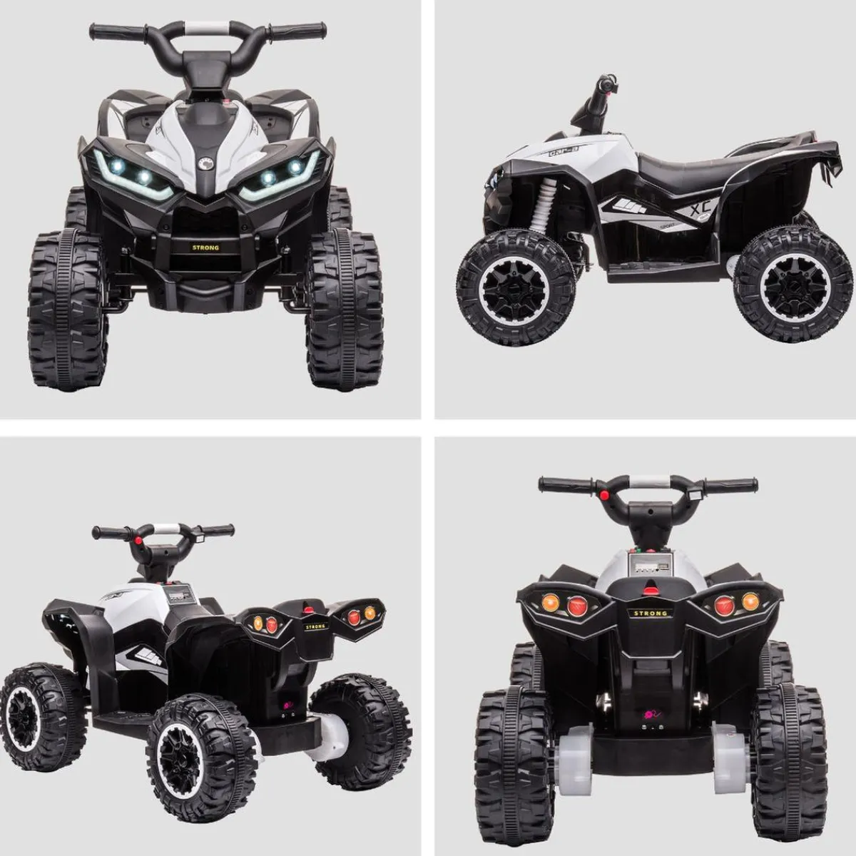 Homcom – Quad eléctrico 12V blanco, un Quad con características realistas como luces delanteras LED y bocina para alimentar la imaginación y el espíritu aventurero de los niños.