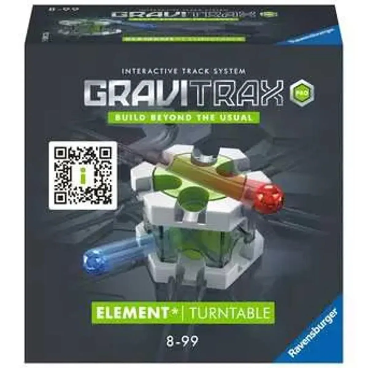El Plato Giratorio Element de la serie PRO de GraviTrax es un plato giratorio mecánico que gira a medida que las canicas ruedan hacia abajo a través de la piedra. No sólo cambia de dirección, sino que también gira la plataforma. Esta característica permite un mayor control sobre los caminos de las canicasm y amplía las posibilidades de variación y dirección de las mismas.