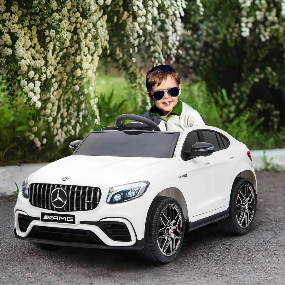 Homcom – Coche infantil eléctrico – Mercedes Benz AMG blanco, un coche infantil como el de verdad.