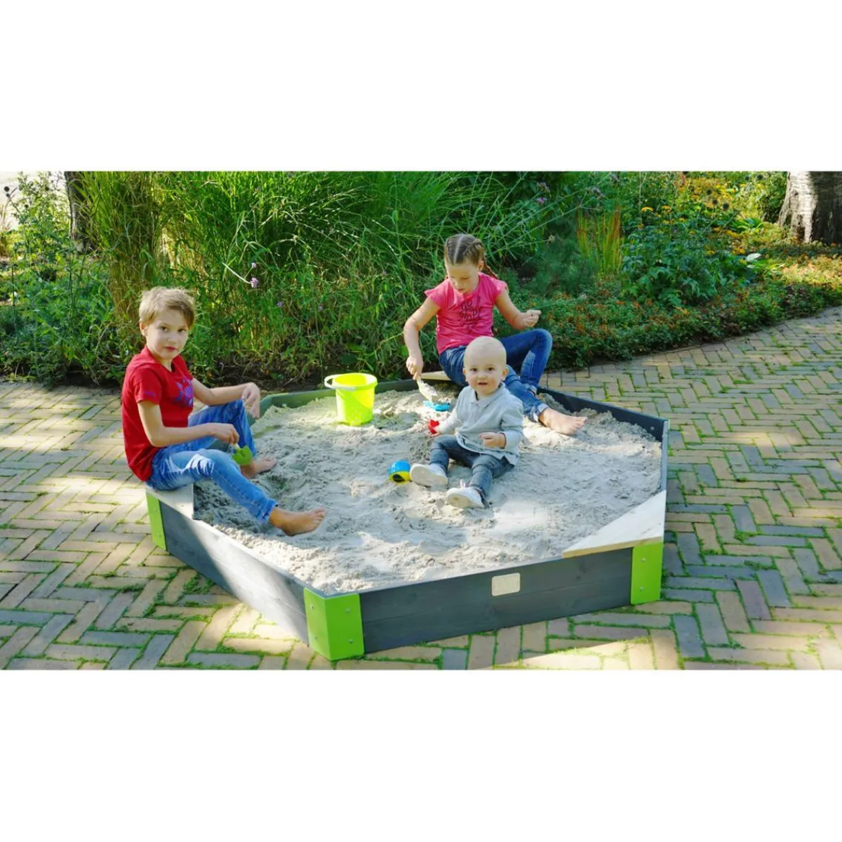 Exit – Arenero de madera Aksent Hexágono 200 x 170 cm, un arenero con forma de hexágono para divertirte y dejar volar tu imaginación.