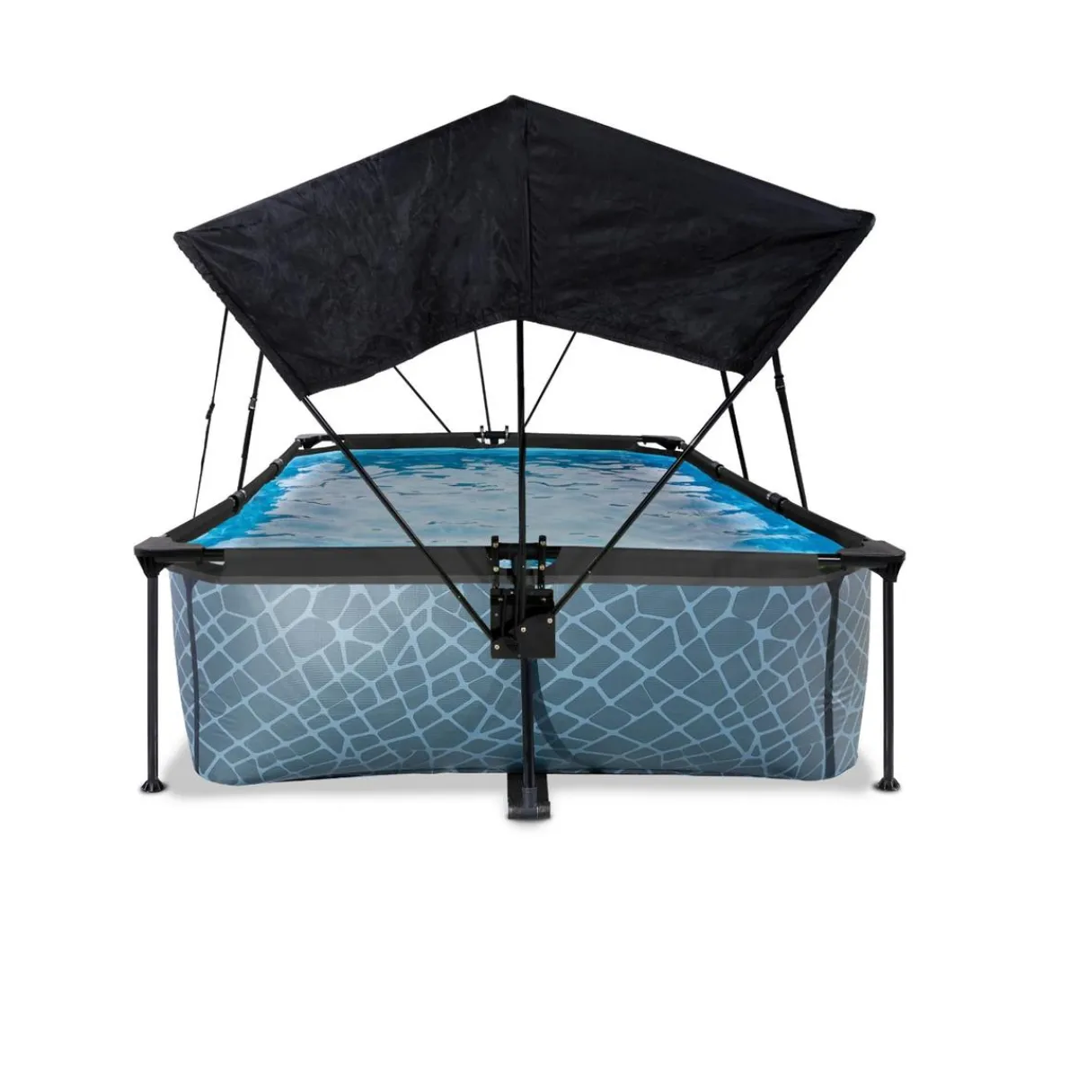 Exit – Piscina Stone efecto piedra gris 300 x 200 x 65 cm con filtro y toldo negro, una piscina rectangular de color gris con efecto de piedra que se integra perfectamente en tu jardín.