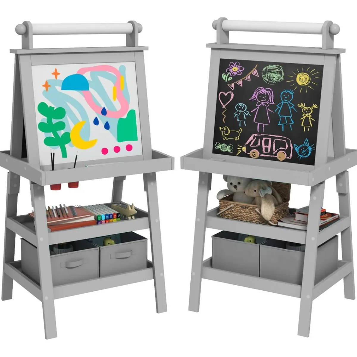 Inspira la creatividad de tu hijo con este caballete multifuncional. Con una pizarra negra, una pizarra blanca magnética y un rollo de papel, este producto 3 en 1 es perfecto para que los pequeños artistas desarrollen su imaginación. Además, incluye compartimentos para mantener todos los materiales organizados. ¡Una herramienta educativa que combina aprendizaje y diversión!
