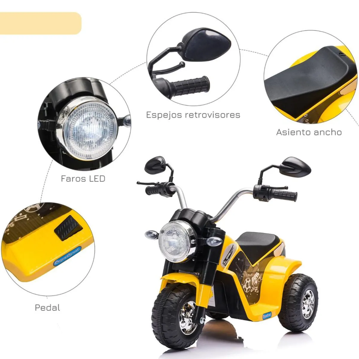 Homcom – Moto eléctriva 6V 3 ruedas amarillo, los niños se lo pasarán en grande mientras promueven habilidades como la coordinación, la orientación y su autoconfianza.