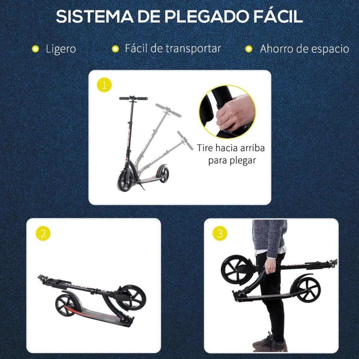Homcom – Patinete plegable aluminio negro, muévete por donde quieras de forma rápida y sencilla con este patinete freestyle de HOMCOM.