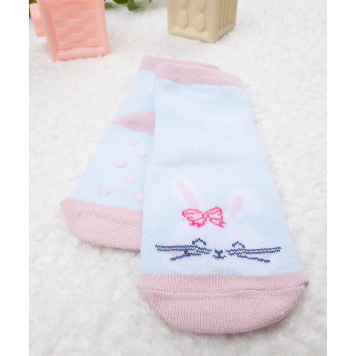Calcetines antideslizantes coloridos para niña. La prenda se desarrolla en varios tonos de azul y rosa con estampado de conejito a juego. El ajuste es suave y garantiza cero molestias con gomas que permiten estabilidad. Accesorios no a la venta. El paquete contiene solo la prenda de vestir.