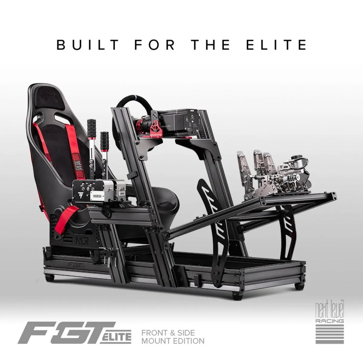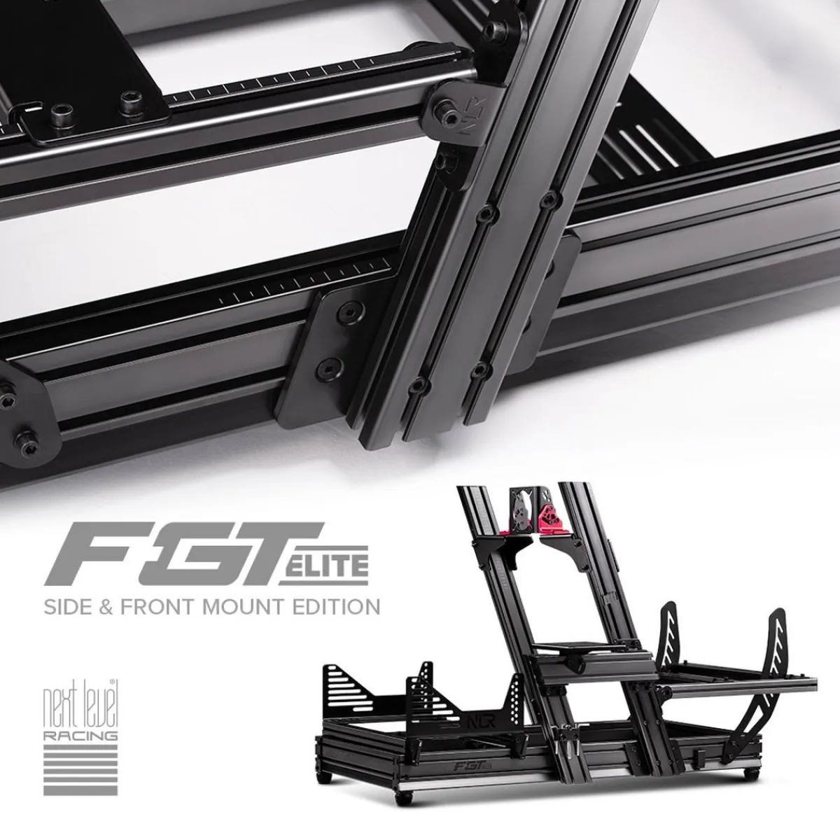 Diseñado y desarrollado con el apoyo de los comentarios de nuestra comunidad y de la industria del automovilismo virtual y real, el cockpit F-GT Elite Front & Side Mount Edition de Next Level Racing es un auténtico cockpit de carreras con todas las posiciones Formula, GT e híbrida, que empuja los límites de lo que se espera de un cockpit de perfil de aluminio y sienta un nuevo estándar para los simuladores de carreras. Además de contar con características líderes del mercado, el F-GT Elite establece un nuevo punto de referencia en cuanto a estética, funcionalidad y calidad para un cockpit de perfil de aluminio, o lo que comúnmente se conoce como un “cockpit de simulador de carreras 8020”.