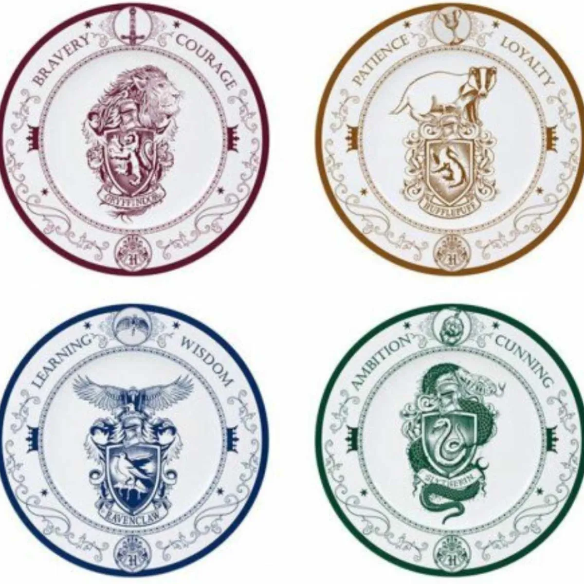 Harry Potter-Set de 4 platos Casas Hogwarts, set de 4 platos reproduciendo las 4 familias de Hogwarts.