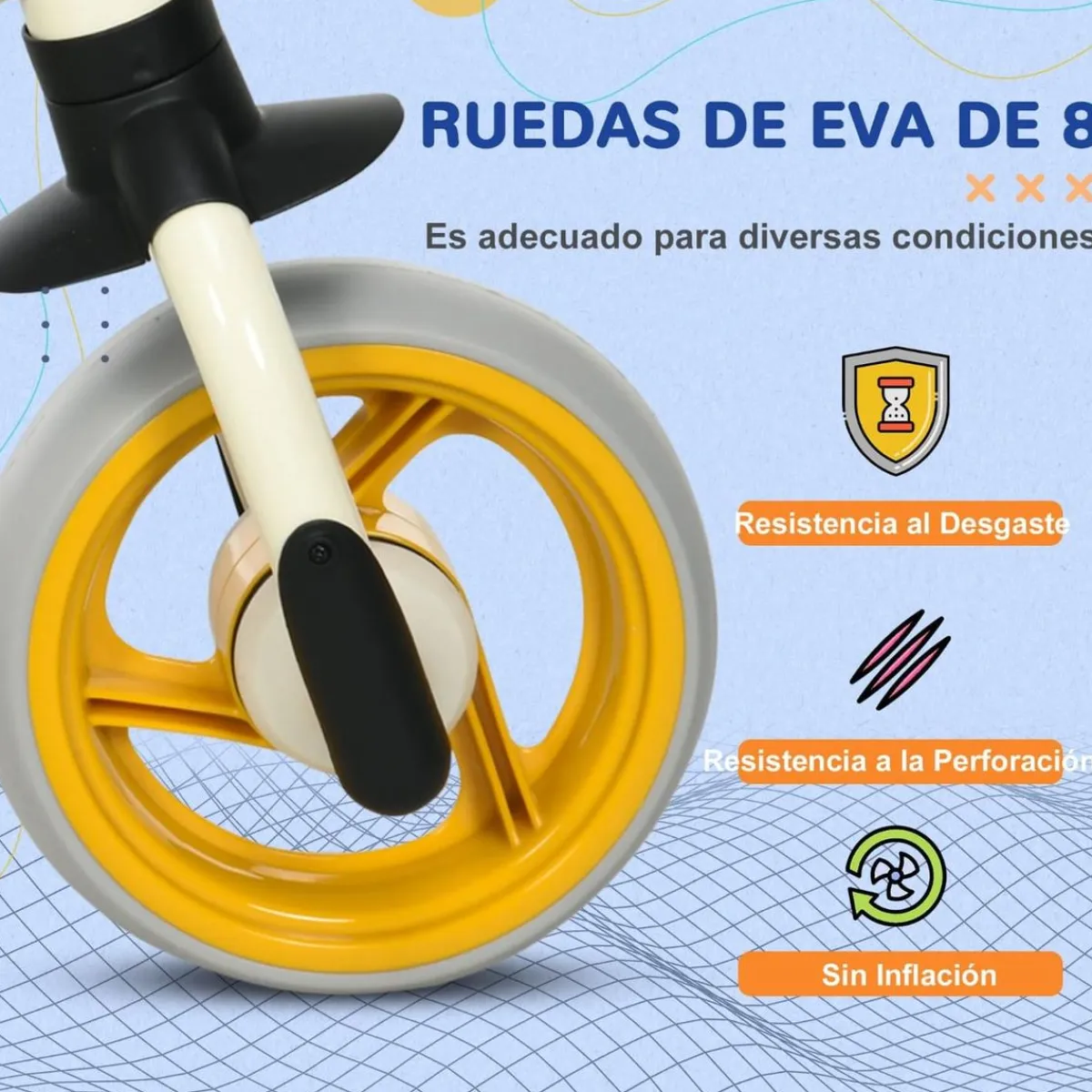 - Bicicleta sin pedales con altura ajustable para adaptarse a diferentes necesidades.