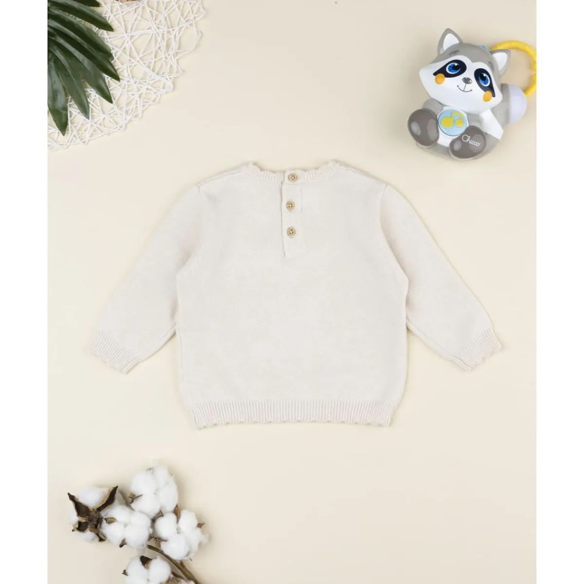 Jersey de niña beige con cervatillo bordado