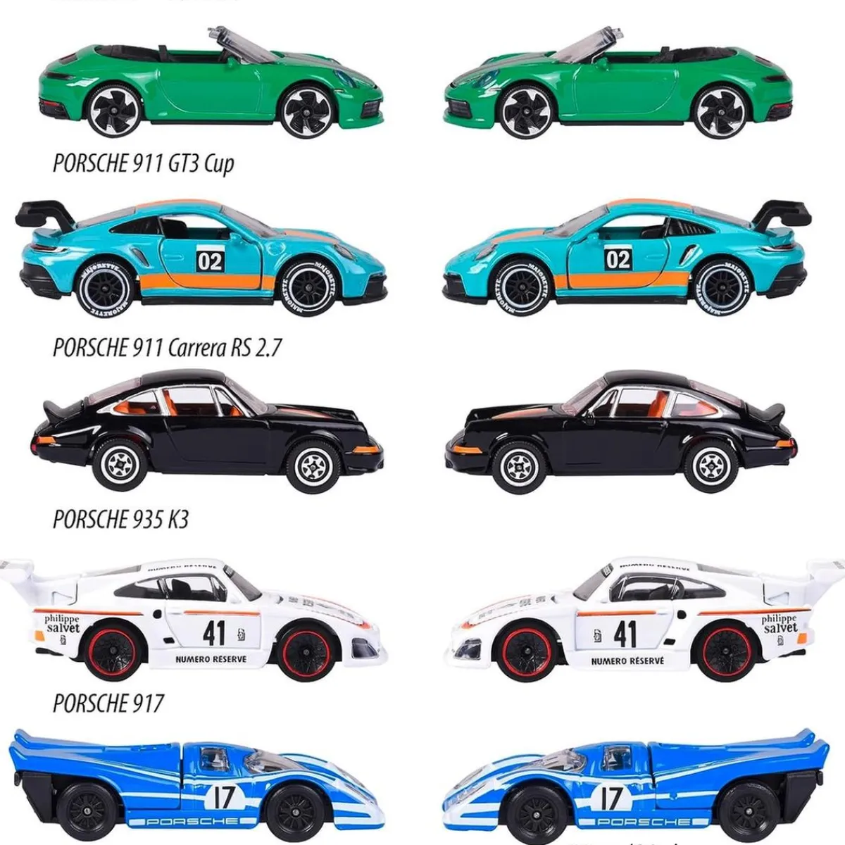 Majorette – Pack de 5 coches de metal Porsche, escala 1:64 con partes de apertura ㅤ