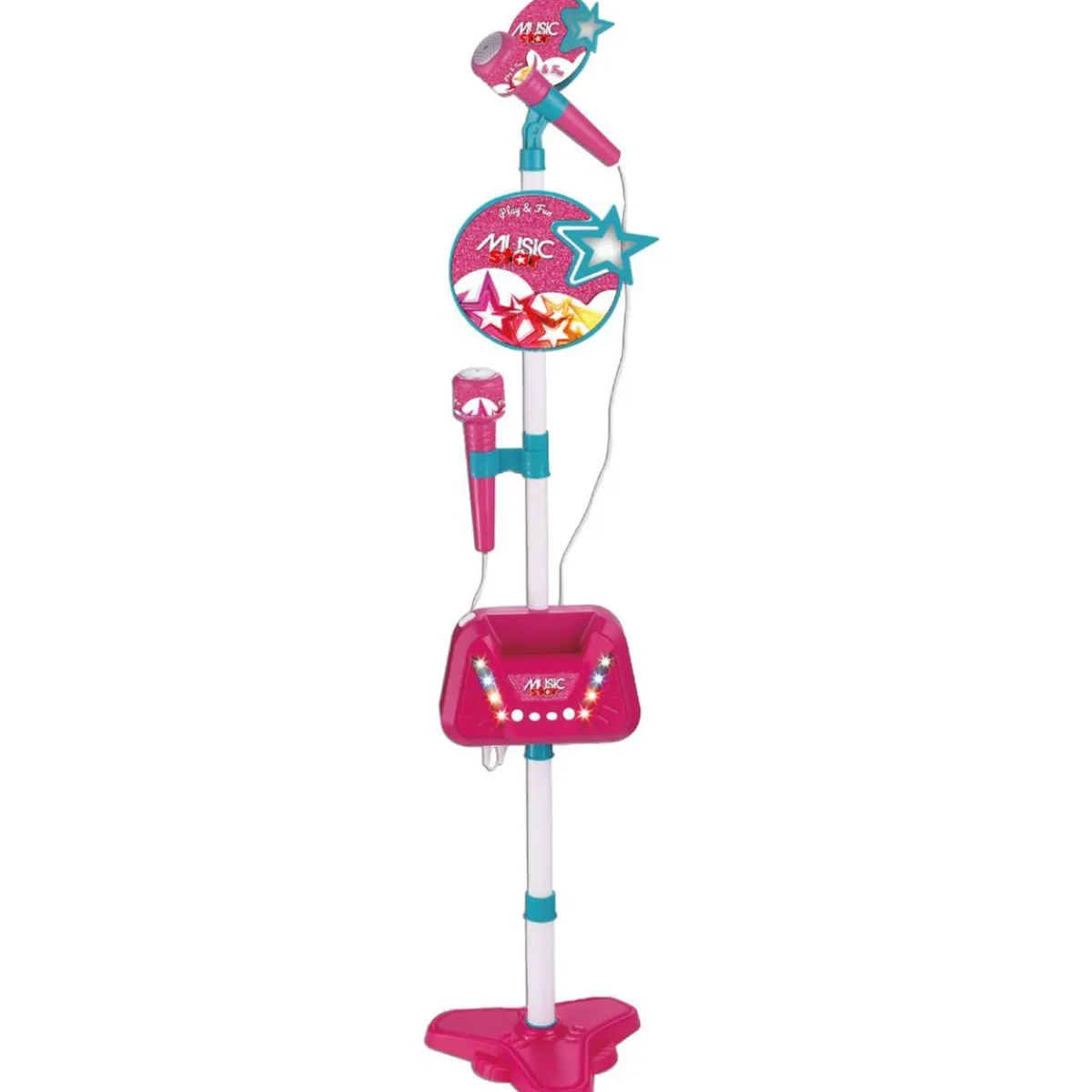 ¡Convierte cualquier habitación en un escenario profesional con el Micrófono de pie Music Star inalámbrico! Conecta tu smartphone y canta tus canciones favoritas con toda la libertad de movimiento que ofrece este micrófono sin cable. Incluye 2 micrófonos para duetos, luces LED que se iluminan al ritmo de la música y un divertido efecto de aplausos que hará que cada actuación sea un verdadero show.