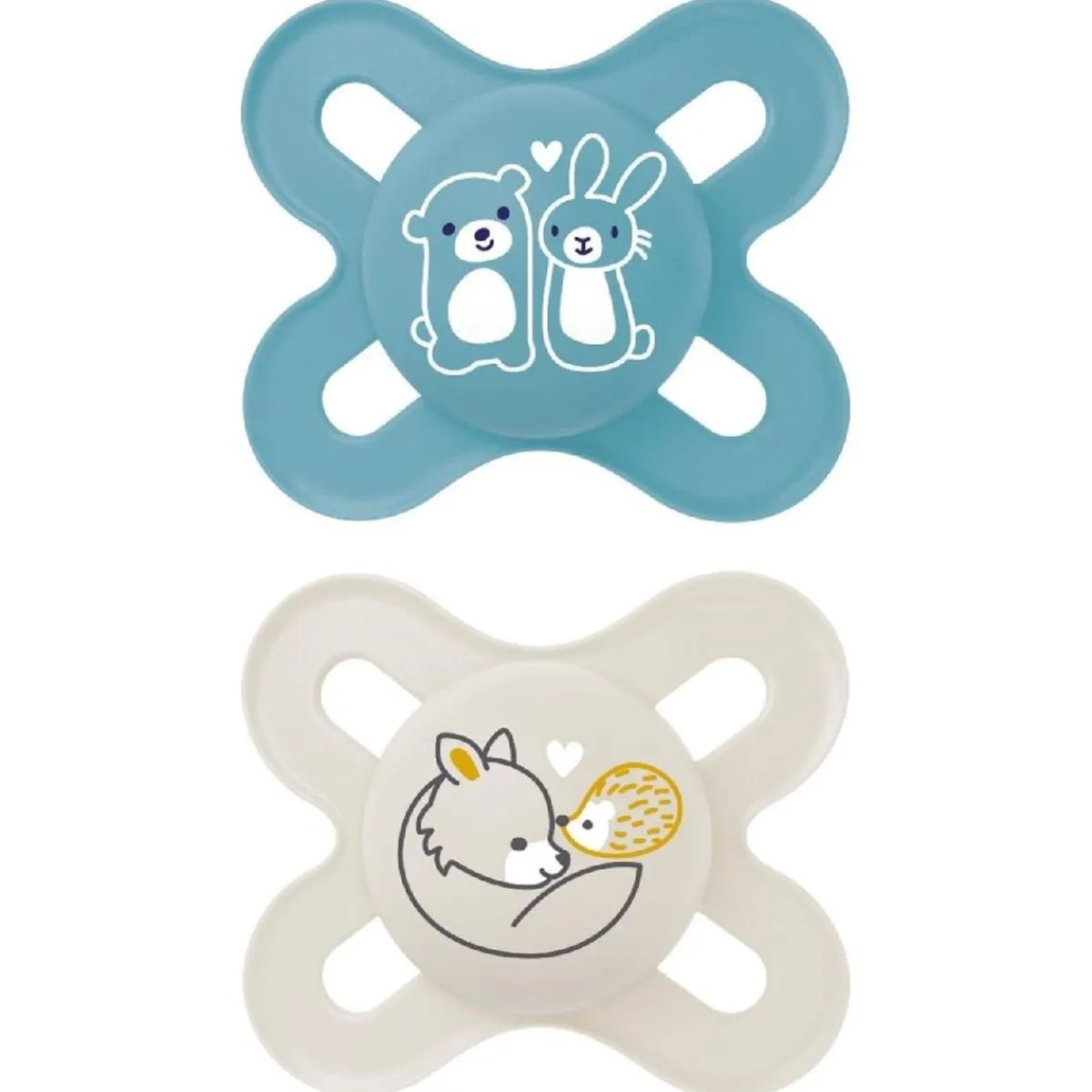 Mam – Pack 2 chupetes Start silicona mate 0-2 meses azul, dos chupetes diseñados para apoyar el desarrollo oral saludable desde el nacimiento.