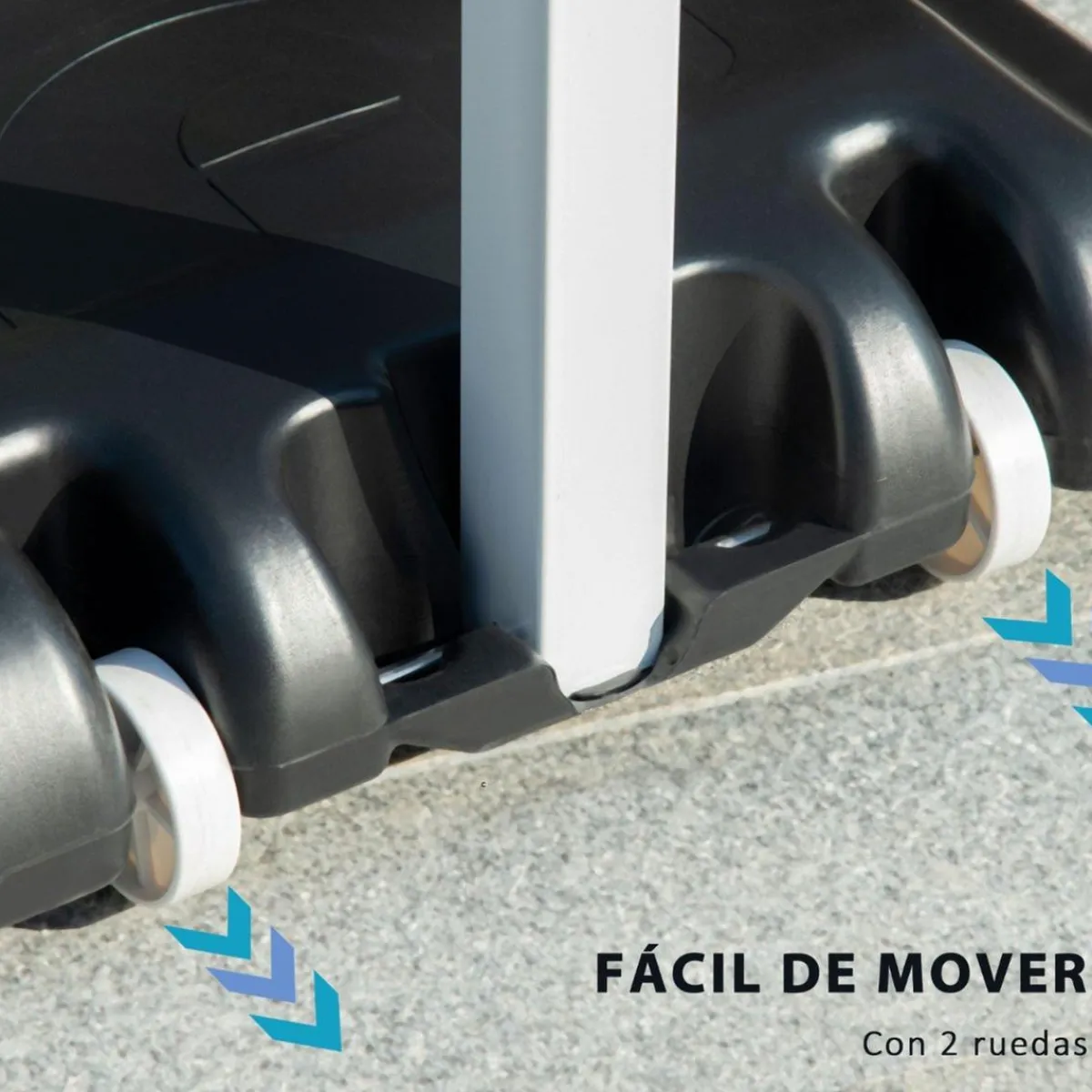 - Incluye una gran base rellenable con agua o arena para mayor estabilidad y robustez.