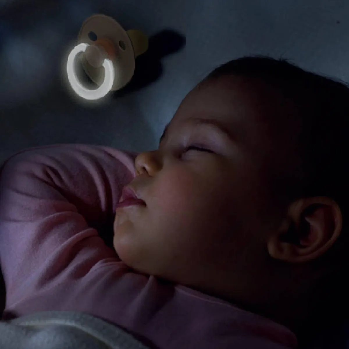 La versión nocturna de estos chupetes viene con una anilla luminiscente que brilla en la oscuridad, facilitando su localización durante la noche sin necesidad de encender luces que podrían perturbar el sueño de tu bebé.