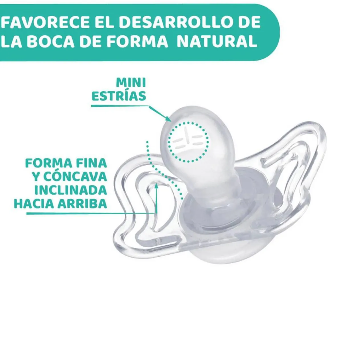 La tetina PhysioForma® favorece la posición natural de la lengua y contribuye al correcto desarrollo del paladar, mientras su forma ergonómica garantiza un ajuste perfecto a la boca del pequeño. Además, el material de silicona “Soft Sense” aporta una textura sedosa y agradable al tacto, ideal para una succión cómoda y natural.
