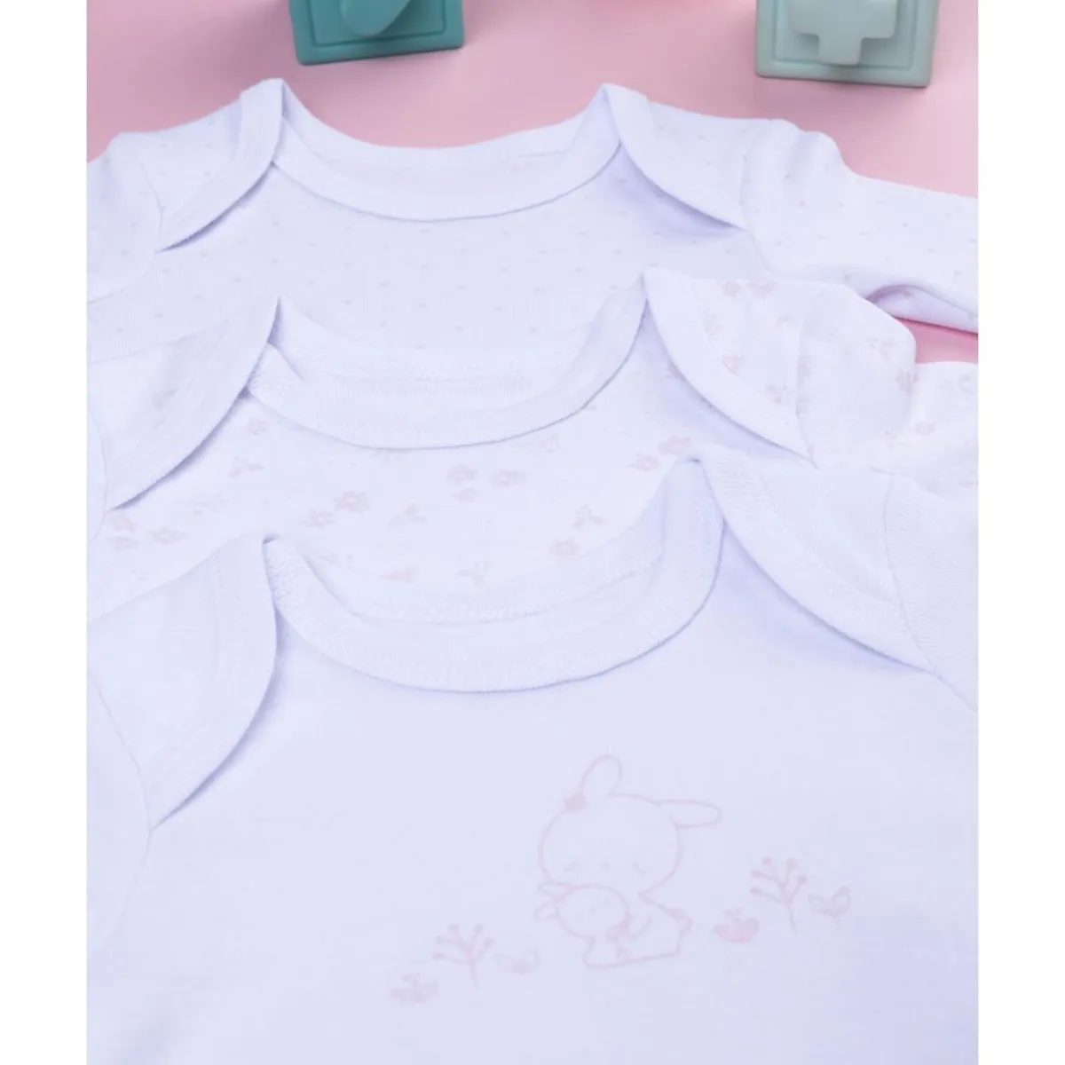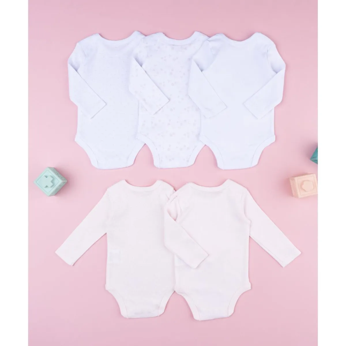 Pack 5 bodies de manga larga para bebé niña en blanco y rosa