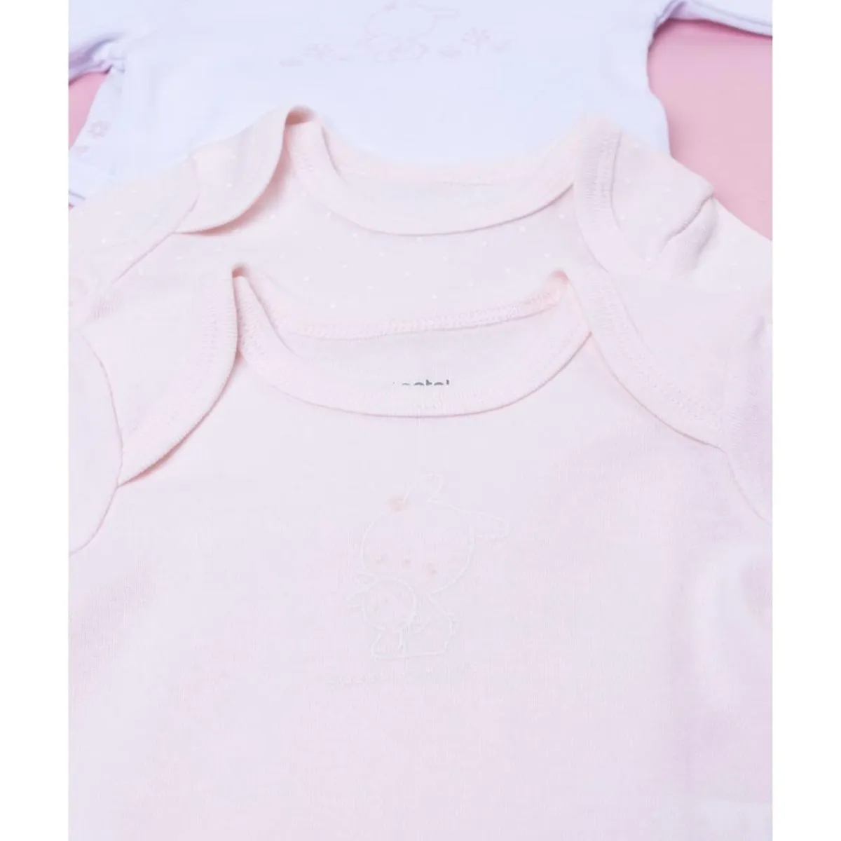 El pack de 5 bodies para bebé niña es un básico imprescindible para el día a día. Incluye prendas en colores blanco y rosa con delicados estampados a contraste, ofreciendo versatilidad y dulzura en cada conjunto.