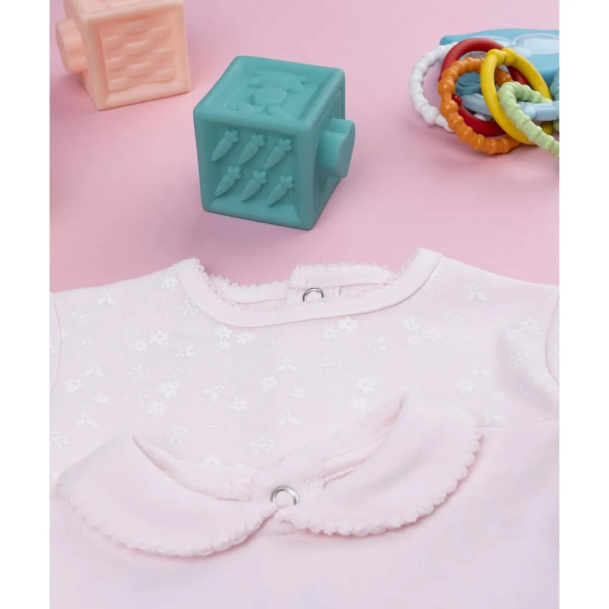 Este pack incluye tres peleles largos con pies, diseñados en algodón interlock para ofrecer la máxima suavidad. Uno en blanco con estampado de conejito, otro en rosa con patrón allover y el tercero en rosa con estampado frontal, cada uno con detalles delicados que aportan encanto al conjunto.