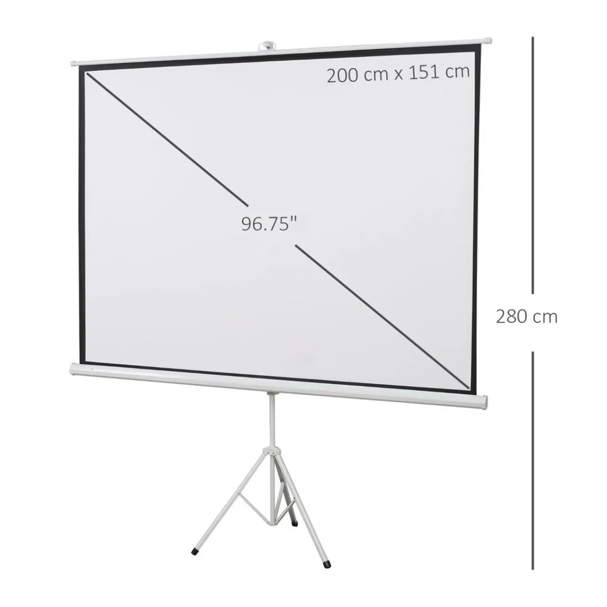Homcom – Pantalla de proyección 100» con soporte Blanco, una pantalla de proyección portátil que es el complemento perfecto para ver tus películas favoritas cómodamente desde el sofá con tu familia o amigos, o para tener en la oficina para presentaciones de proyectos y reuniones.
