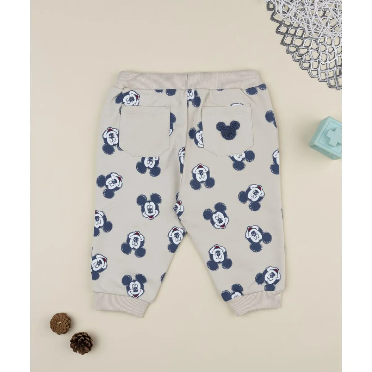 Este pantalón para niño en color beige reúne calidez, comodidad y un diseño alegre. El tejido tiene interior afelpado que aporta abrigo suave, ideal para los días frescos. Presenta estampado all over de Mickey Mouse y bolsillos en corte diagonal que añaden funcionalidad y un toque moderno. La cintura elástica con cordón ajustable permite un ajuste seguro que acompaña el movimiento durante el juego.